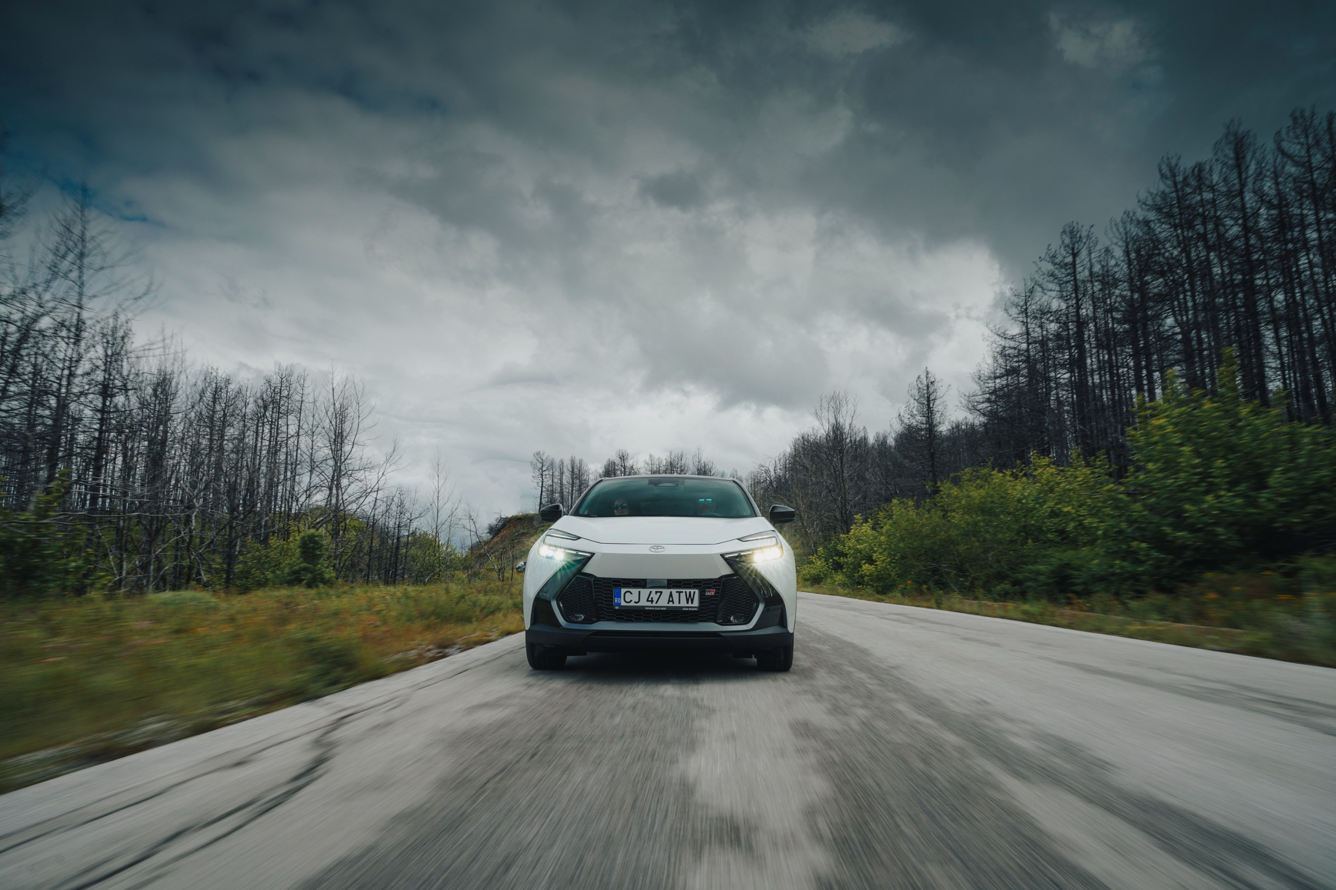 Toyota C-HR nu este o mașină pe care vrei să o bruschezi. Nu de alta, dar va opune rezistență, te vei enerva, și veți strica prietenia. Ea este o mașină puternică și agilă, cu suficienți cai pentru dimensiunea ei (197 CP în versiunea 4×4 GR Sport), care te duce cu viteză fără efectiv să simți. Ceea ce poate fi tricky pentru că discreția asta a cutiei te fură și nu știi când ți s-a dus piciorul in accelerație. Din păcate discreția nu este valabilă peste tot, pentru că mașina este destul de zgomoroasă. Posibil să nu fie antifonată bine pentru că după ce sari de sută începe să facă urâțel. Am mai remarcat și că are câteva probleme de anxietate, că începe să te piuie de câte ori te apropii de ceva. Și la câte taxe de autostradă am plătit, s-a făcut auzită ca o divă.