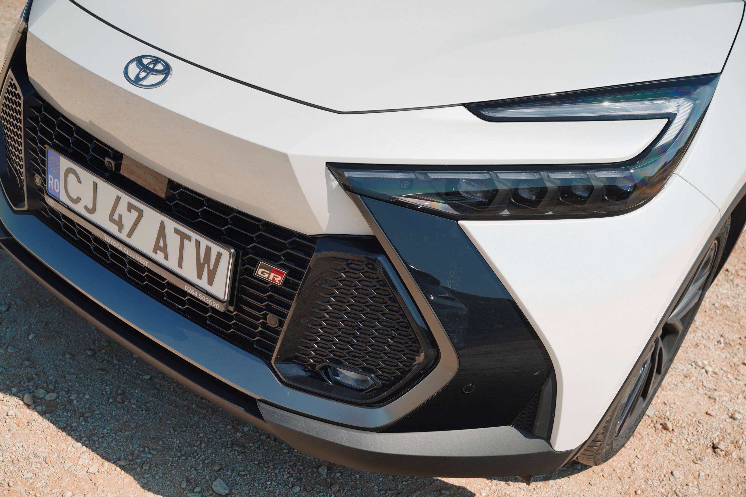 Exemplarul din tur – trimis tocmai din cealaltă parte a țării, de la dealerul Toyota Cluj Vest – a fost unul în echipare de top GR Sport și caroserie alb-negru.