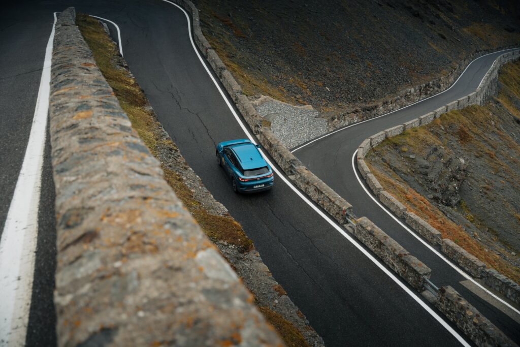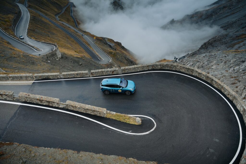 The interface is just as friendly and easy to use. You get behind the wheel, put your foot on the brake pedal and you’re ready to go. You immediately notice the larger 12.9-inch center screen and a new, more intuitive and user-friendly infotainment system. Rear axle electric motor power has increased to 286 hp and torque is now 545 Nm. The battery is 77 kWh, and it charges quickly and is more efficient. Today we drove up and down the Julier, Stelvio and Gavia passes in rain and bad weather. Average consumption indicated by the on-board computer: 16.7 kWh/100 km.