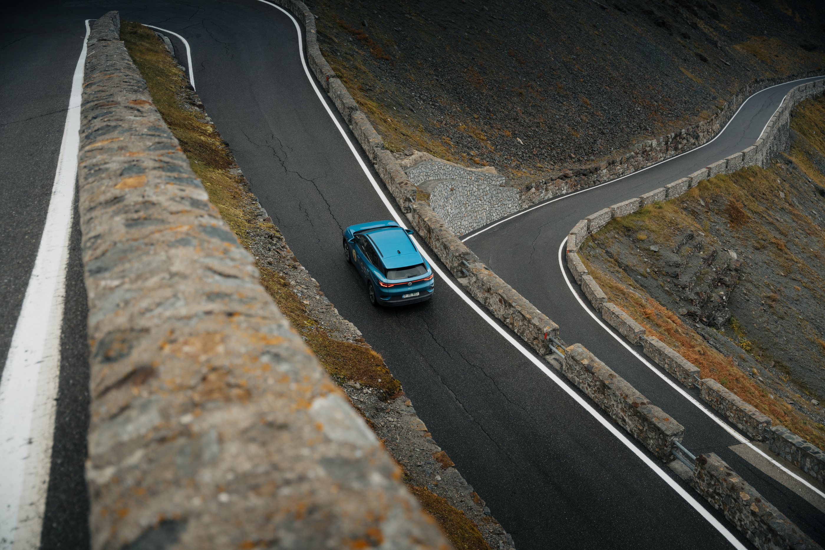 And now, on the road from Switzerland to Italy via the Stelvio Pass, we’ve had a look at the technologically facelifted version of the German model. Visually, from the outside, it’s identical to what we knew from the standard model. Get behind the wheel and you find the same great driving position, the same spacious interior full of storage compartments, but also those few mistakes Volkswagen has made and is going to fix: the tactile “rear” button for operating the rear windows that you accidentally press all the time, the touch buttons on the steering wheel and the famous sliders for audio volume and temperature, but now easier to control.