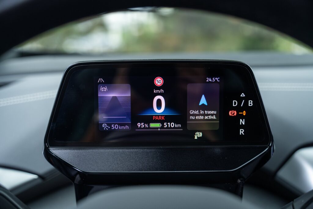 With this update coming in 2025, I found the ID.4 a bit more efficient. Even if it rides on a slightly outdated technical configuration (let’s be honest and admit that in the last four years there have been significant advances in the volume electric segment), the German crossover performs its duties with honor. The load curve is not to be neglected (you’ll see it in the infographic at the end), the range is not bad either, and the efficiency (aka energy consumption) was within good limits in the conditions we encountered today on the road (a highway in Hungary full of roadworks and 80 km/h speed limits plus similar situations in Austria).