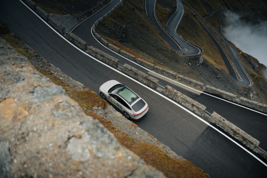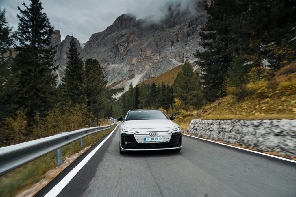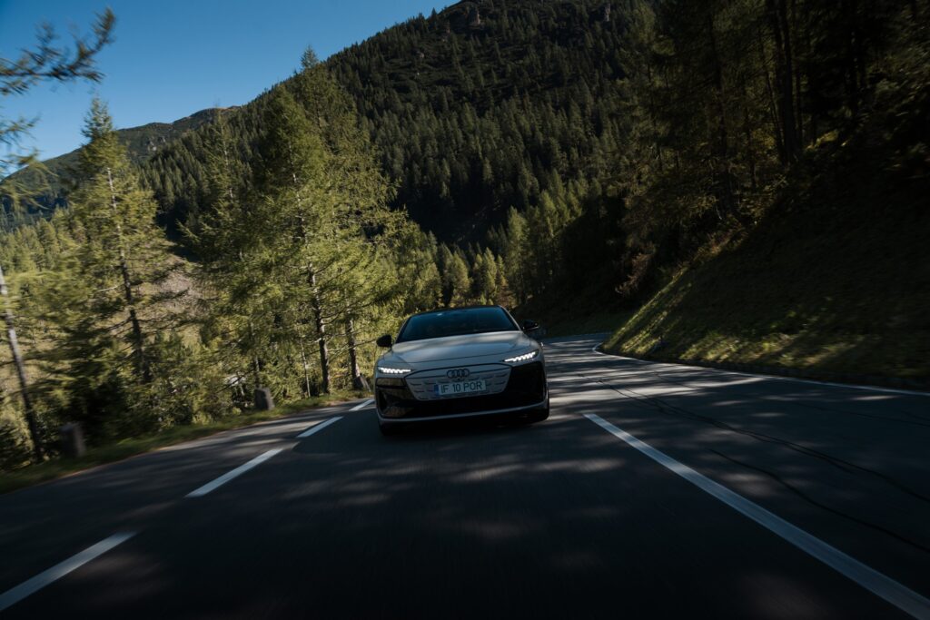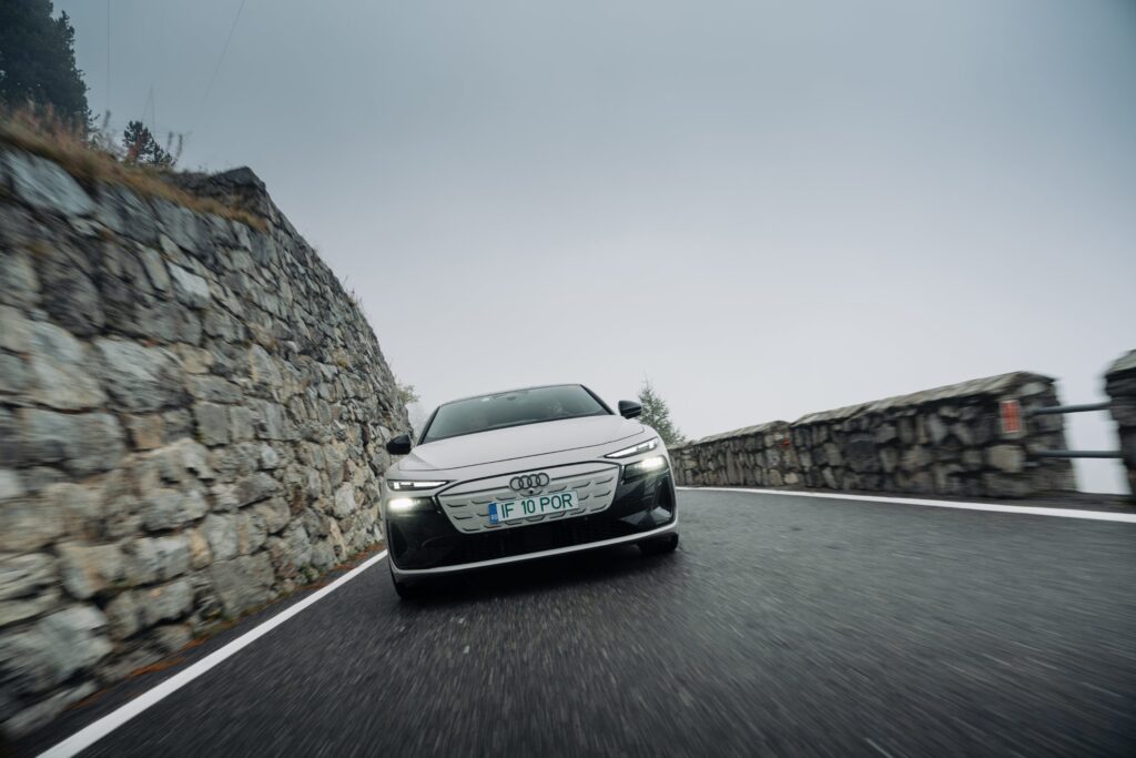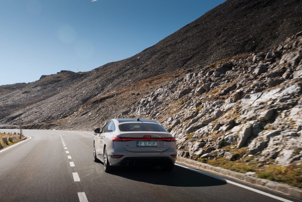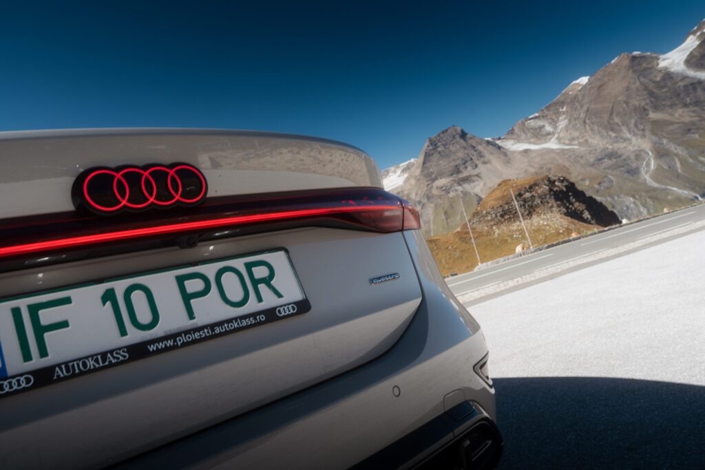 Modelul german a fost parte din caravana EUROCHARGE by Schaeffler, turul în care am traversat cele mai interesante trecători montane din Alpi. S-au adunat peste 4.500 de kilometri în care am testat cum se descurcă A6 Sportback e-tron atât pe autostrăzi (fie ele și doldora de lucrări; Salut, Ungaria! Salut, Austria!), dar, cum spuneam și un rând mai sus, și pe pasurile care au afișat cu lejeritate valori de înălțime de peste 2.000 de metri.