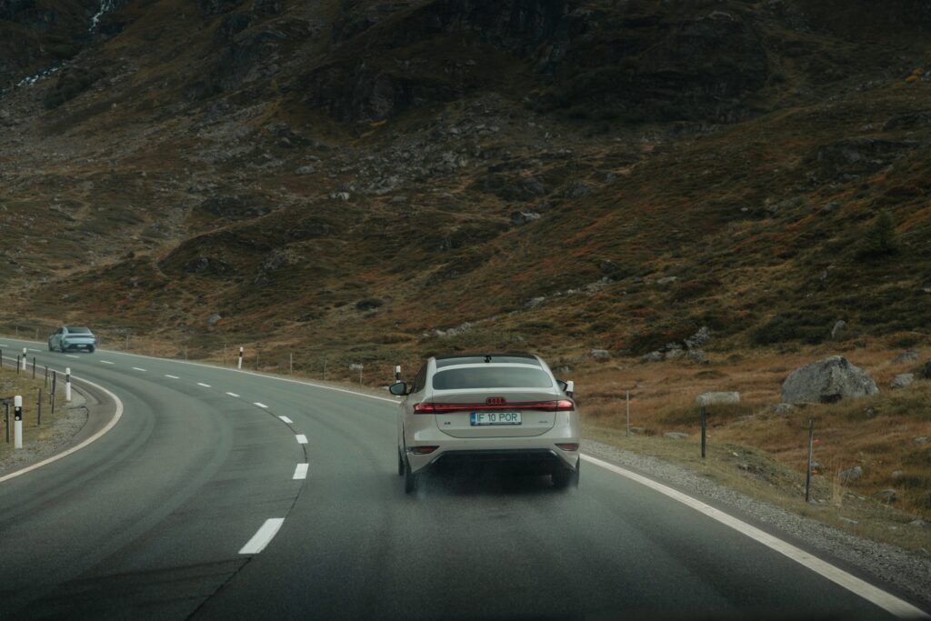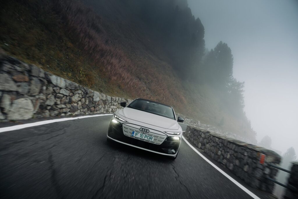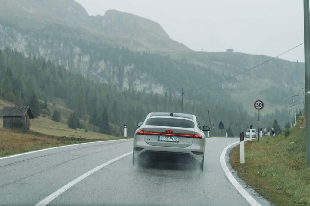 M-am urcat la volan pentru a pleca spre pasurile italiene, și nu am avut nevoie de mai mult de doi kilometri pentru a realiza că, pentru mine, A6 Sportback e-tron este mașina care mă îmbracă cel mai bine în acest tur la capitolul condus. La nivel de șasiu, de setare a suspensiei, de demultiplicare a direcției – un rând de aplauze. Chiar dacă mașina pune accent pe confort, nu o face izolându-te de experiența de condus. Foarte plăcut acest mix realizat de germani.