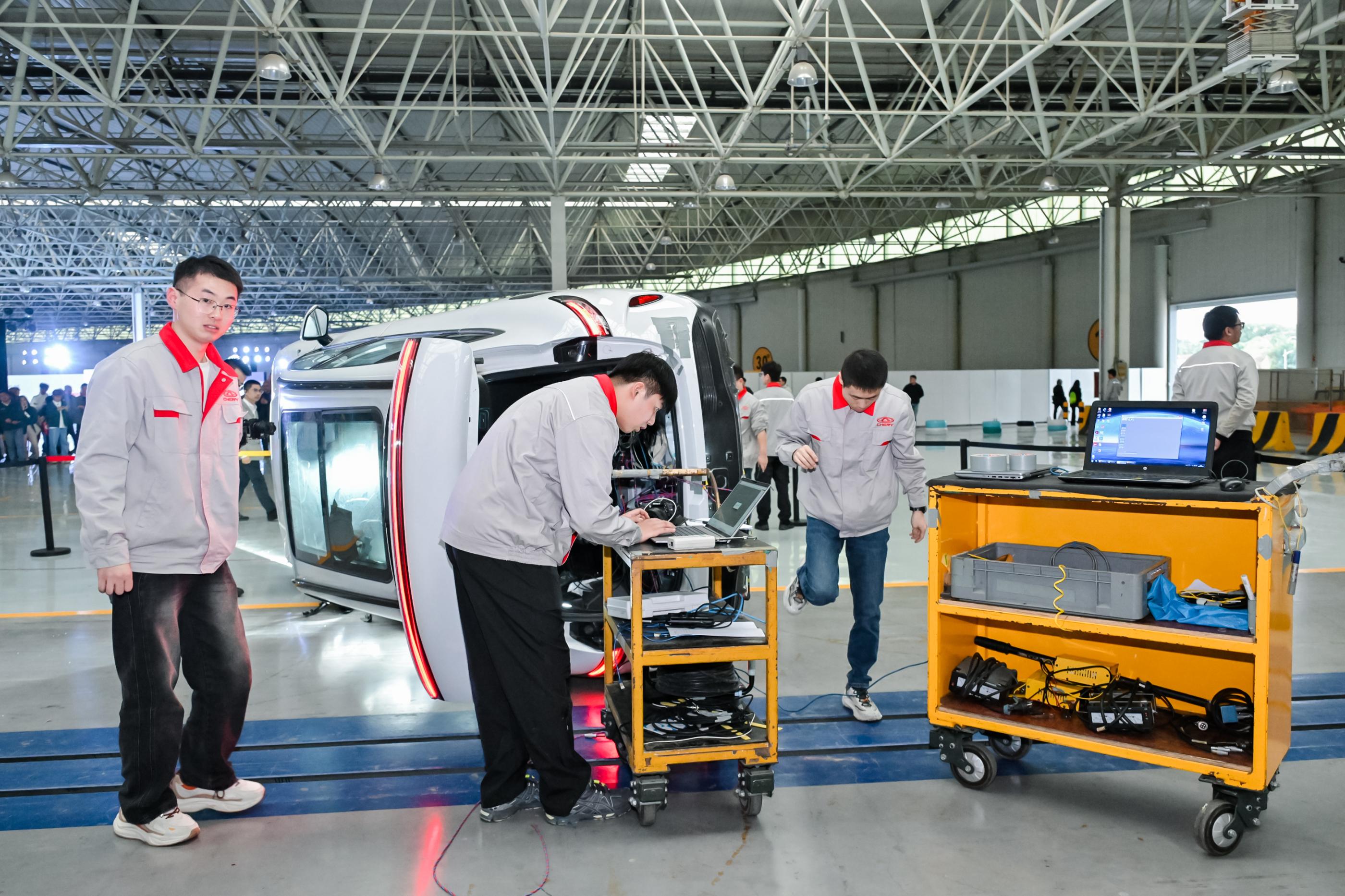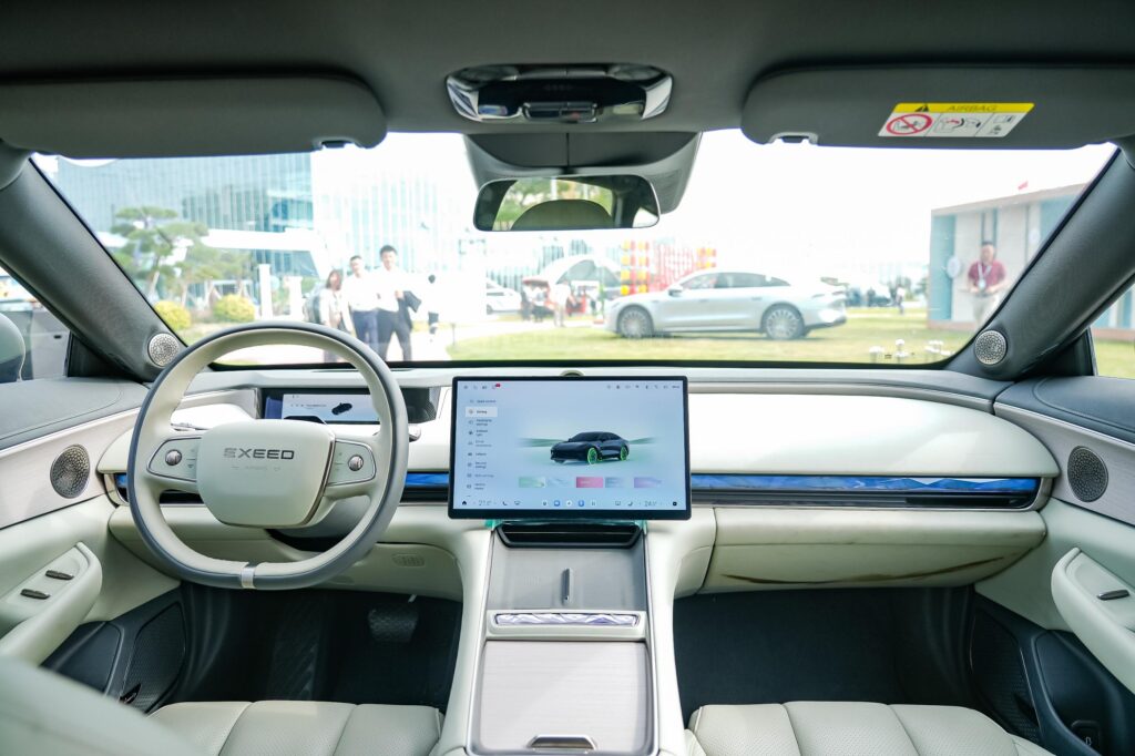 Chery nu-i singurul care pregătește rularea autonomă și semiautonomă: Waymo are un serviciu similar de robotaxi pe o serie de rute prestabilite în SUA, iar în timpul în care l-am petrecut în Wuhu am văzut și-un Zeekr 001 cu luminile verzi aprinse în oglinzi. Care-i treaba cu ele? Pentru a-i atenționa pe ceilalți participanți la trafic că mașina merge semiautonom, în oglinzi, în bara față și pe capota portbagaj se aprind LED-uri de culoare verde. Curse the technology, not the driver.