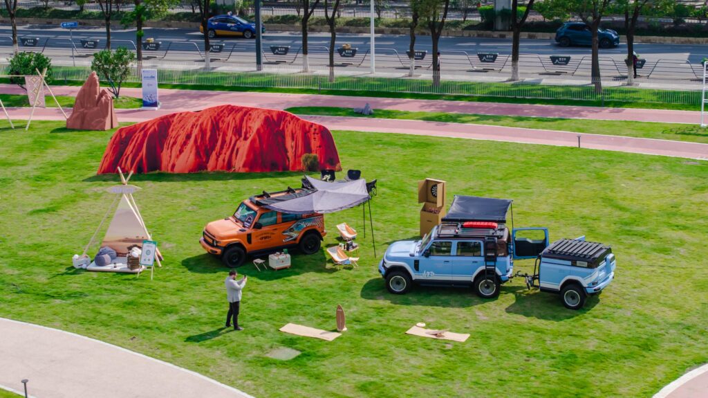 Evenimentul s-a numit Chery International User Summit, iar oamenii ăștia au încercat să facă un salon auto al lor în două dintre locațiile în care s-a desfășurat. Au fost expuse modele de serie, modele cu echipamente destinate ieșirilor în natura, au fost chiar și ceva mașini capabile să care drone, și vehicule experimentale (unul putea face crab walk, iar celălalt fusese programat să-și coordoneze suspensia în așa fel încât și Snoop Dogg ar fi fost invidios).
