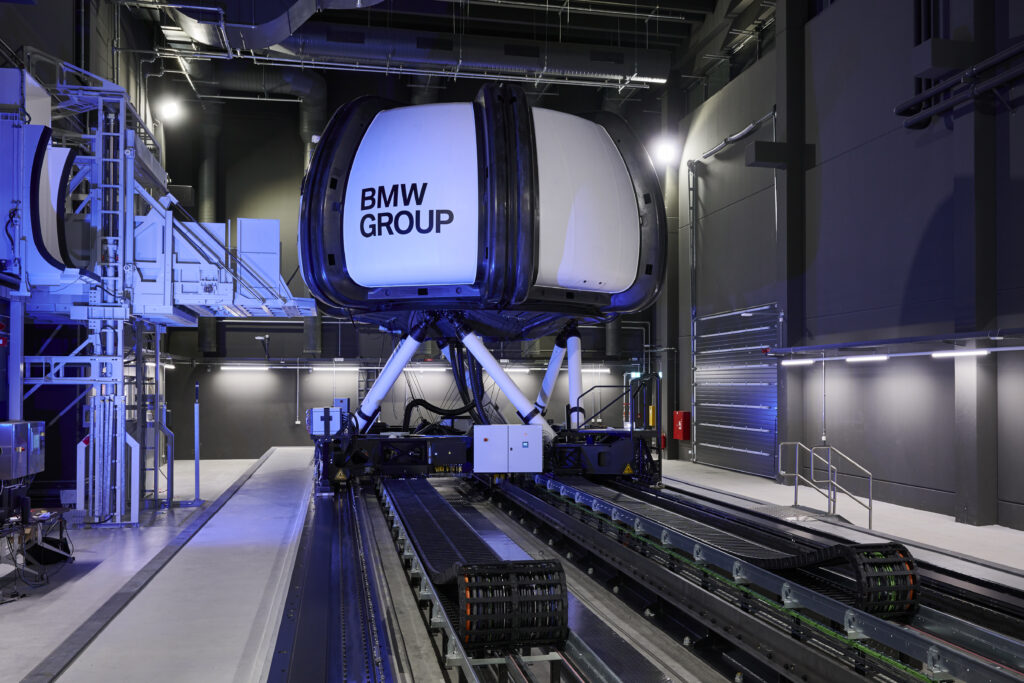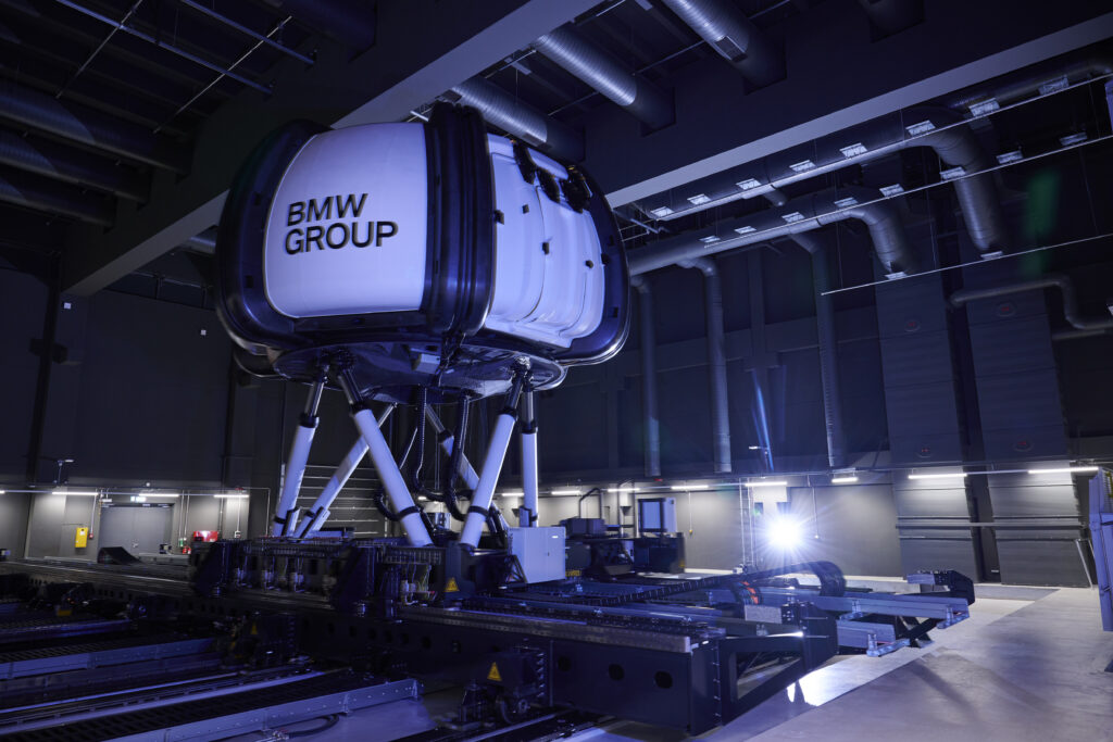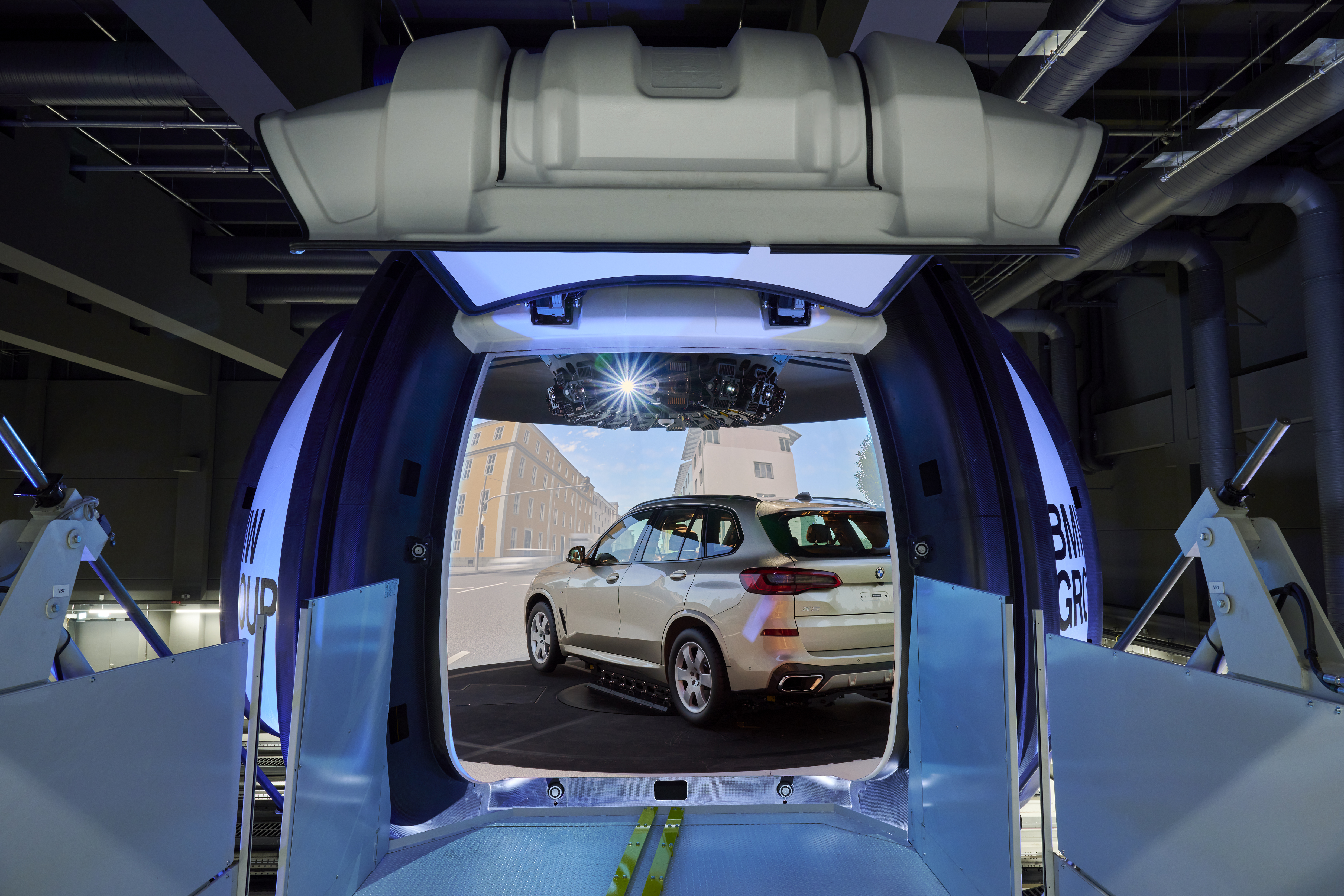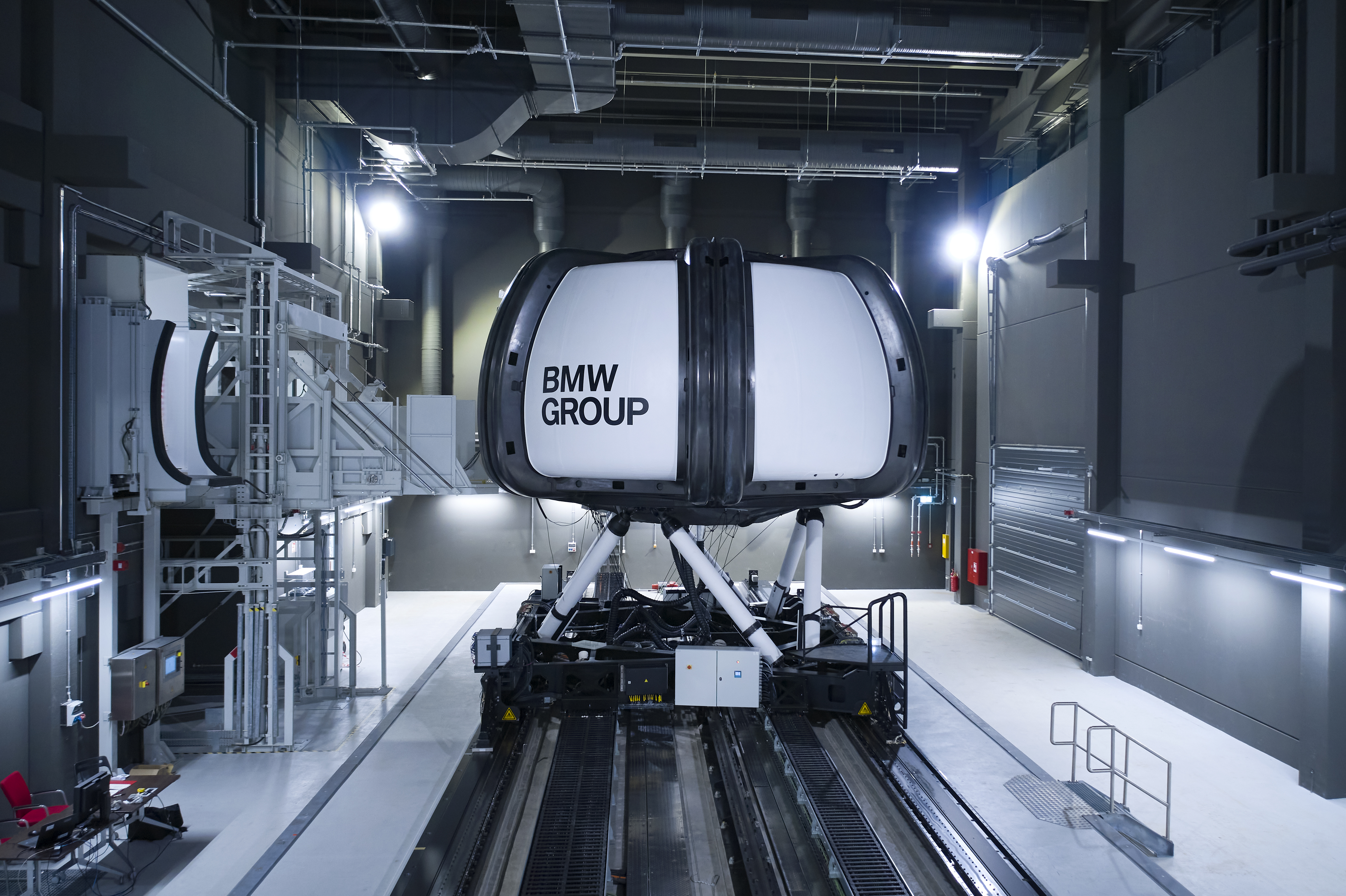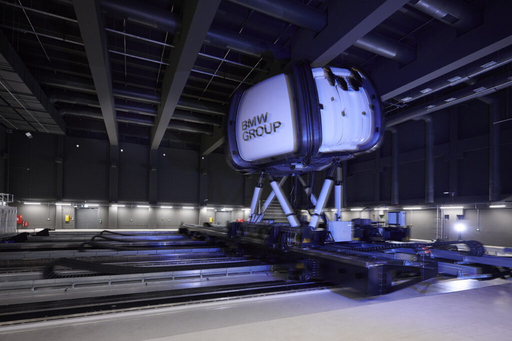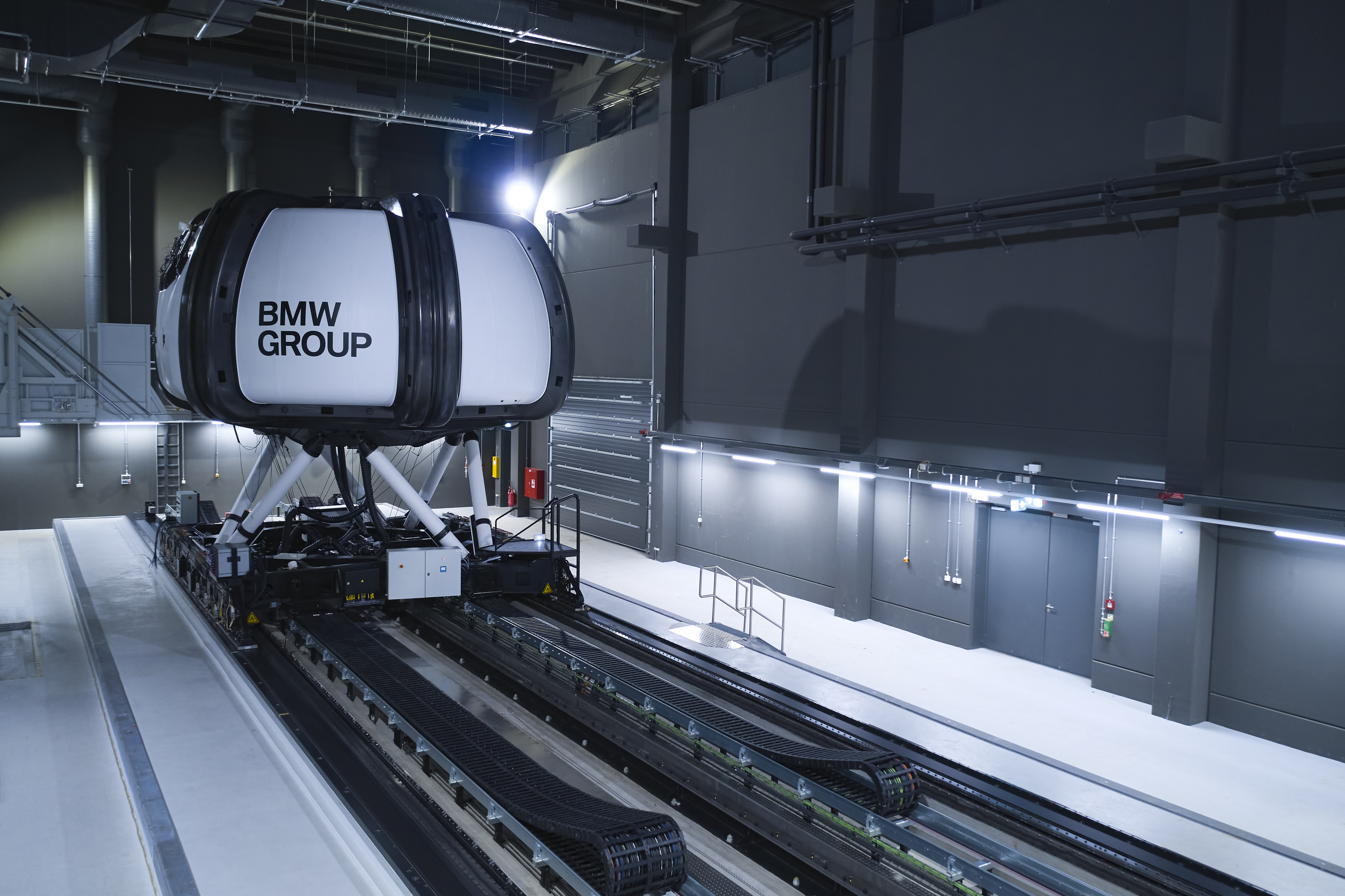 De pe hol fac dreapta pe un culoar îngust, care mă duce într-o cameră ovală. Sunt în interiorul hexapodului. În centru, o mașină. Cu roți, caroserie, interior și toate cele. Nu e nimic simplificat sau mimat din acest punct de vedere. La instrucțiunile tehnicienilor care se ocupă de simulator, mă așez în dreapta. Mi se spune să îmi pun centura, să închid portiera și să stau normal, ca și cum aș fi pasager într-o mașină adevărată, pe o autostradă adevărată. Mi se spune că programul va simula caracteristica dinamică a unui iX3. Apoi aud un „we are starting now!“ din exterior.