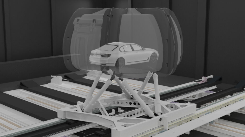 Diamond Space se sprijină pe 6 pistoane hidraulice uriașe și funcționează non-stop 12 ore pe zi, 7 zile din 7. Procesul de simulare este numit MBS (de la „multi-body simulation“) pentru că include centrul de greutate al mașinii împreună cu alte elemente: șasiul, punțile, roțile, frânele sau modul în care acționează cuplul pe șasiu și cum se simt toate aceste variabile pe șosea.