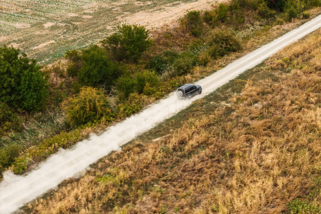 Cred că adunat, am stat două ore, poate două ore și un pic în Defender. Un Defender 90, diesel, trei litri, șase cilindri. În prima parte la volan, cam vreo oră, în partea a doua pe banchetă. Imediat, mașina îți transmite confort (mă rog, mai puțin când călărești obstacole mari sau sprintezi pe șleauri). Și nu-i doar confortul ăla fizic, în care spatele stă bine pe spătarul scaunului. Simți confort față de imperfecțiunile, iregularitățile și inegalitățile solului pe care urmează să-l iei între roți. O protecție, ceva invizibil.