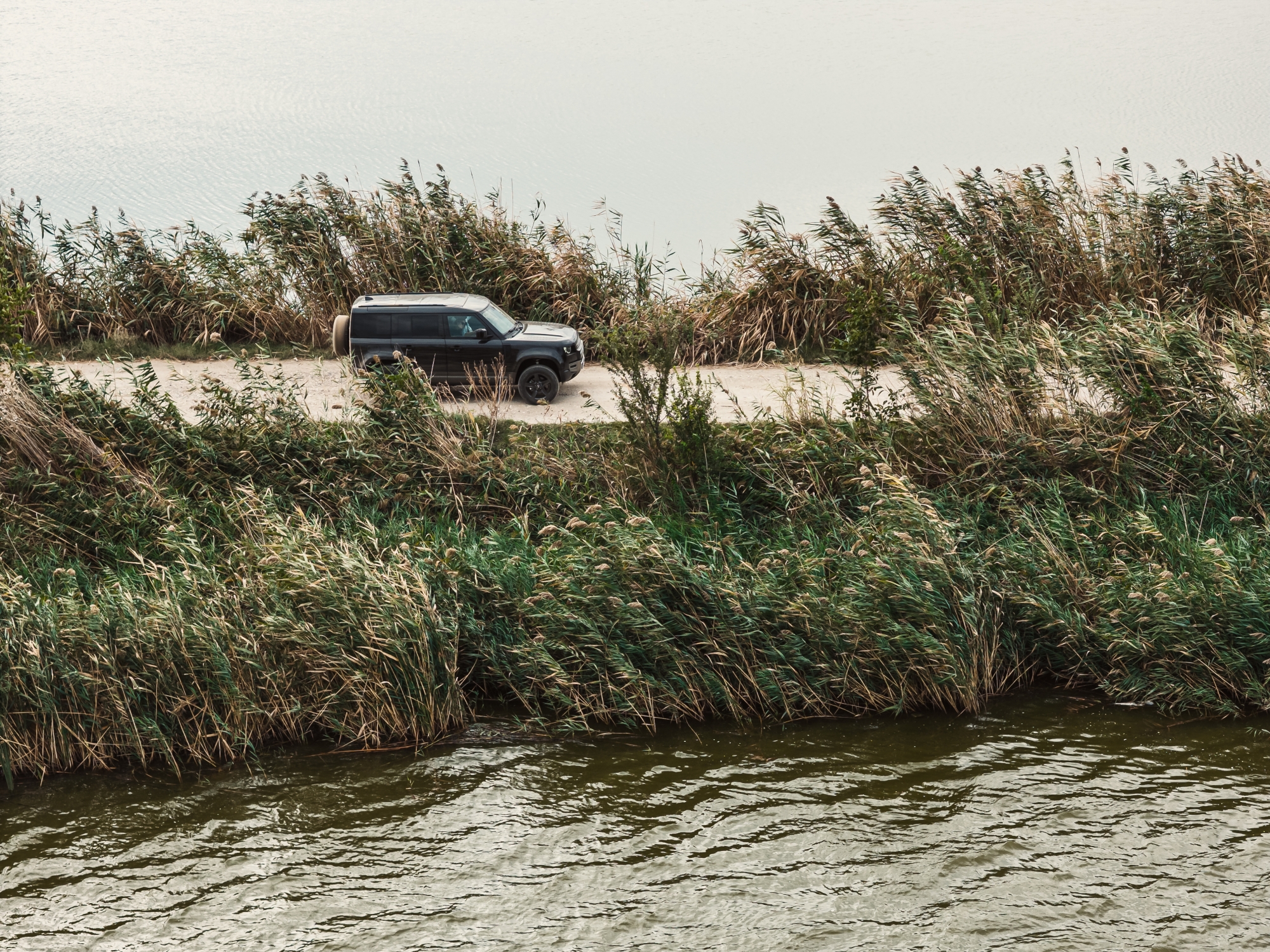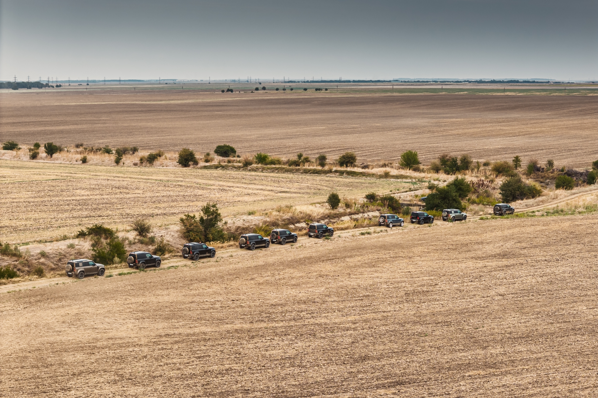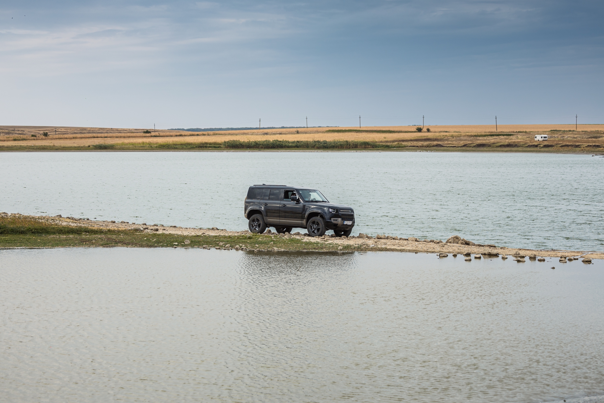 Cred că adunat, am stat două ore, poate două ore și un pic în Defender. Un Defender 90, diesel, trei litri, șase cilindri. În prima parte la volan, cam vreo oră, în partea a doua pe banchetă. Imediat, mașina îți transmite confort (mă rog, mai puțin când călărești obstacole mari sau sprintezi pe șleauri). Și nu-i doar confortul ăla fizic, în care spatele stă bine pe spătarul scaunului. Simți confort față de imperfecțiunile, iregularitățile și inegalitățile solului pe care urmează să-l iei între roți. O protecție, ceva invizibil.