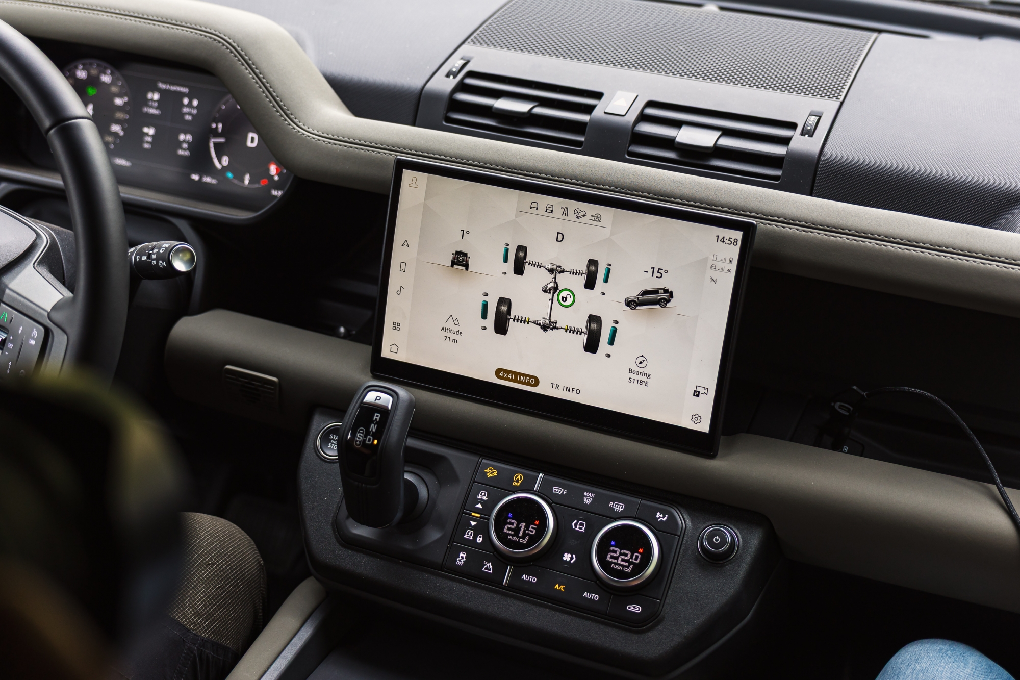 Bașca, există și tot felul de funcții ajutătoare, inclusiv o vedere pe sub șasiu, de parcă manevrezi o navă spațială printr-o ploaie de meteoriți. În fine, n-am să fac pe deșteptul, toate astea te ajută și cred că cine n-a mai ieșit dincolo de asfalt cu un Defender nou le-a găsit chiar ca o alinare a diverselor anxietăți până la urmă firești.