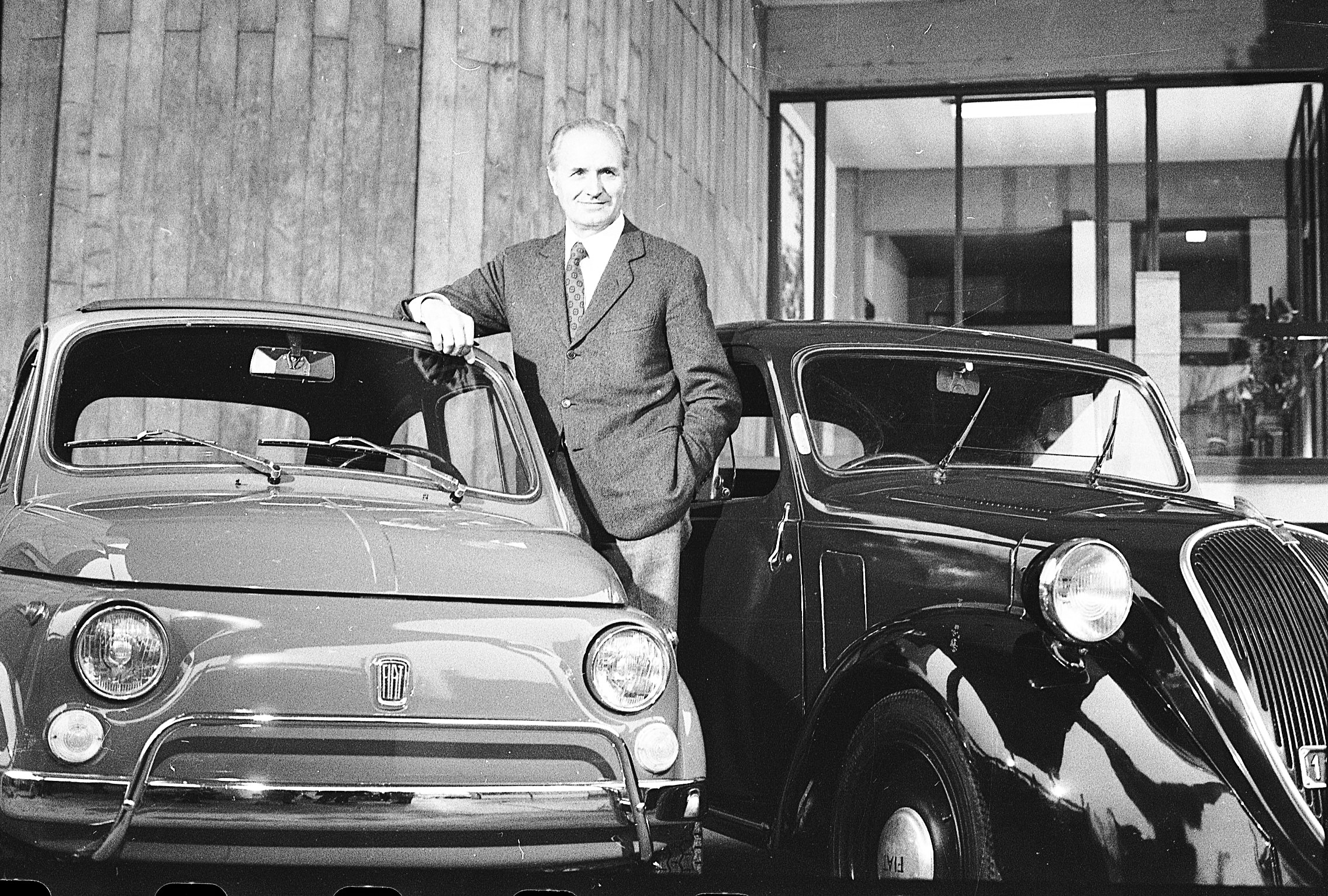 Dante Giacosa, între Topolino (dreapta) și Fiat 600. Foto: Fiat