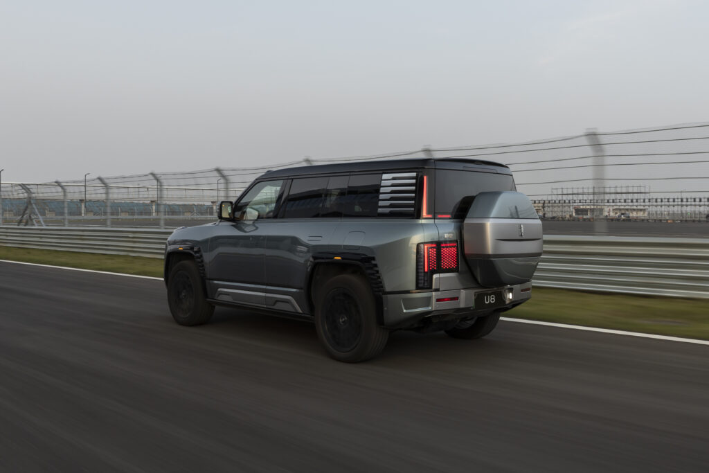 În versiunea „clasică”, Yangwang U9 rămâne o mașină spectaculoasă la exterior, la interior și la capitolul dinamic. Suspensia DiSus-X permite ajustări de până la 500 mm pe secundă la fiecare roată, tehnologia permițându-i mașinii să execute implicit salturi de pe loc pentru a demonstra controlul șasiului. În regim de circuit, sistemul anulează complet ruliul în viraje și tangajul la frânări.