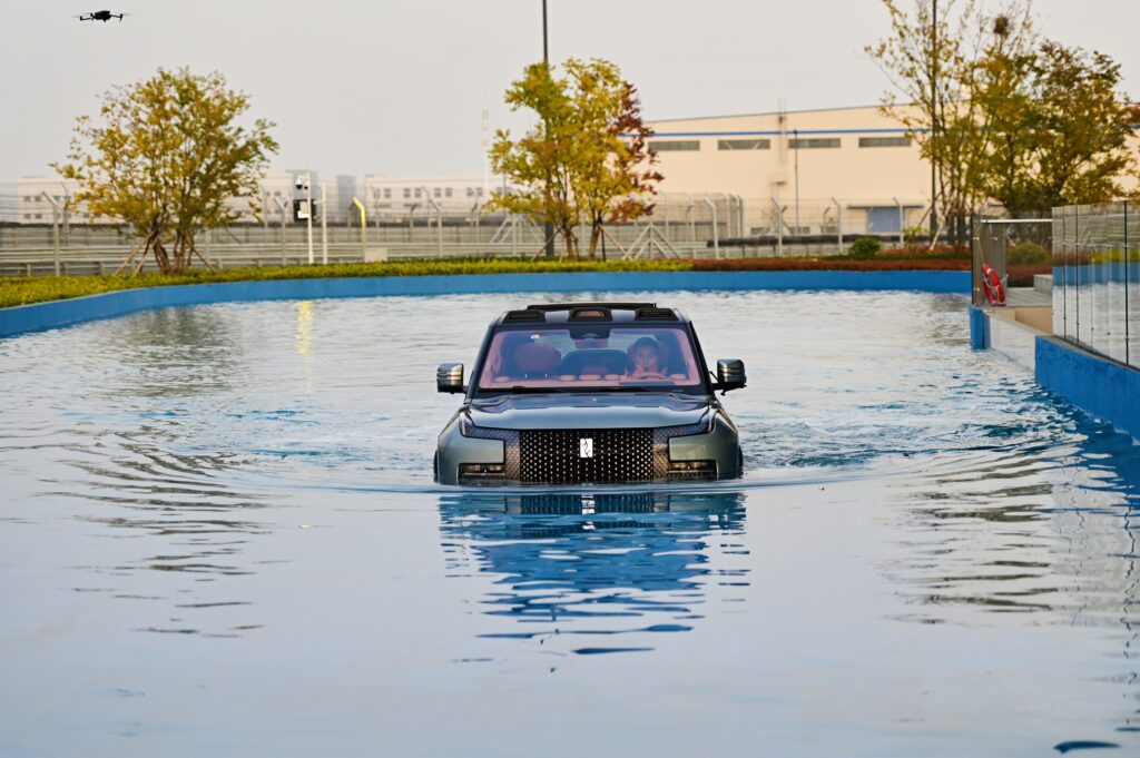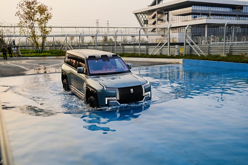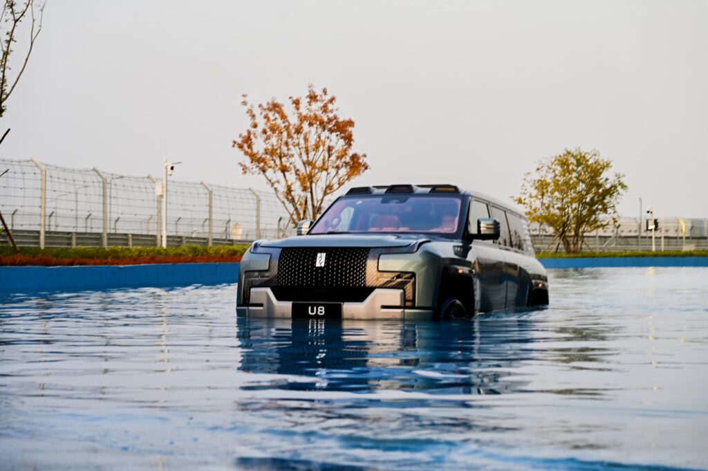 Demonstrația de flotabilitate a SUV-ului electric de lux Yangwang U8 a fost unul dintre momentele de curiozitate majoră pentru jurnaliștii din toată lumea prezenți la Zhengzhou.