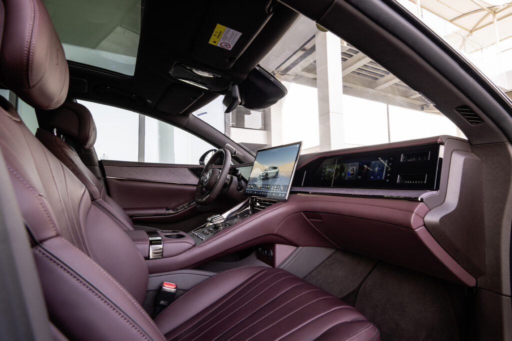 Habitaclul pune accent pe detaliile senzoriale, folosind piele Nappa și finisaje din lemn natural. Mașina dispune de guri de ventilație acționate electric și un sistem audio cu un difuzor central activ. Totul este proiectat pentru a crea o legătură între șofer și vehicul prin rafinament tactil și digitalizare avansată.
