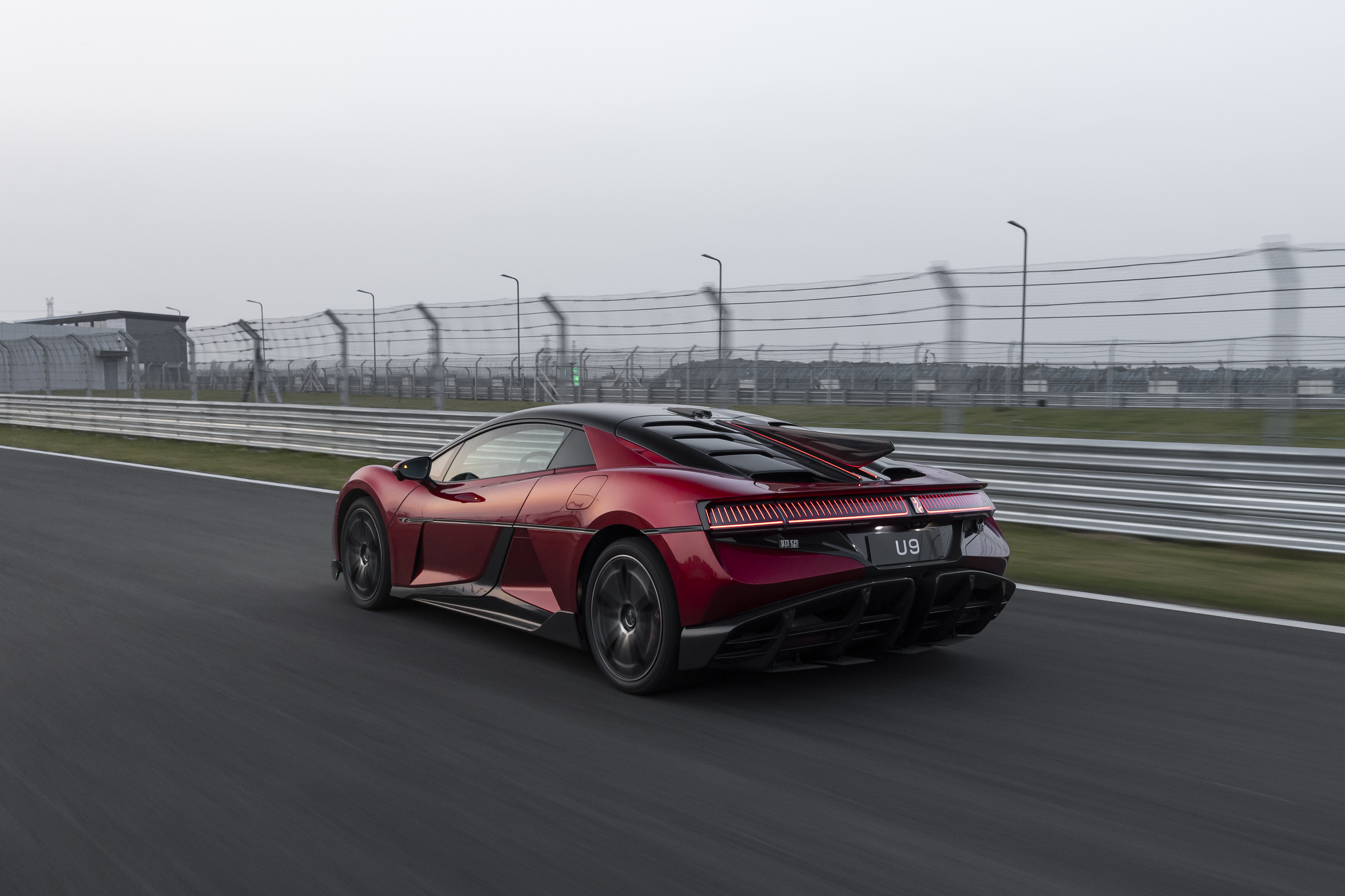 Performanțele ating praguri care alimină orice graniță între supermașinile pe benzină și cele electrice: accelerare 0-100 km/h în 2,36 secunde, putere de peste 1300 CP și un cuplu de 1680 Nm. Frânele carbon-ceramic cu 6 pistoane asigură controlul masei vehiculului pe circuit. Interiorul include sistemul DiLink Intelligence Cockpit, făcând din U9 un vehicul utilizabil și în regim cotidian.