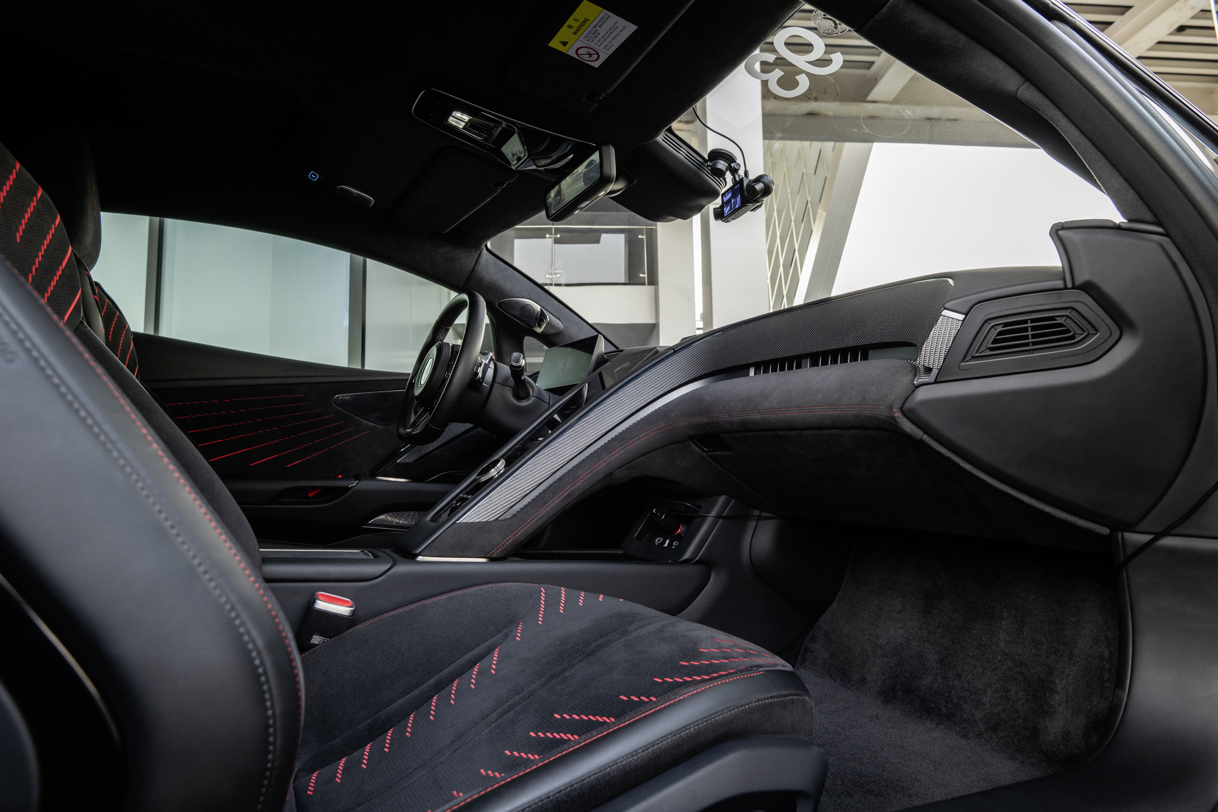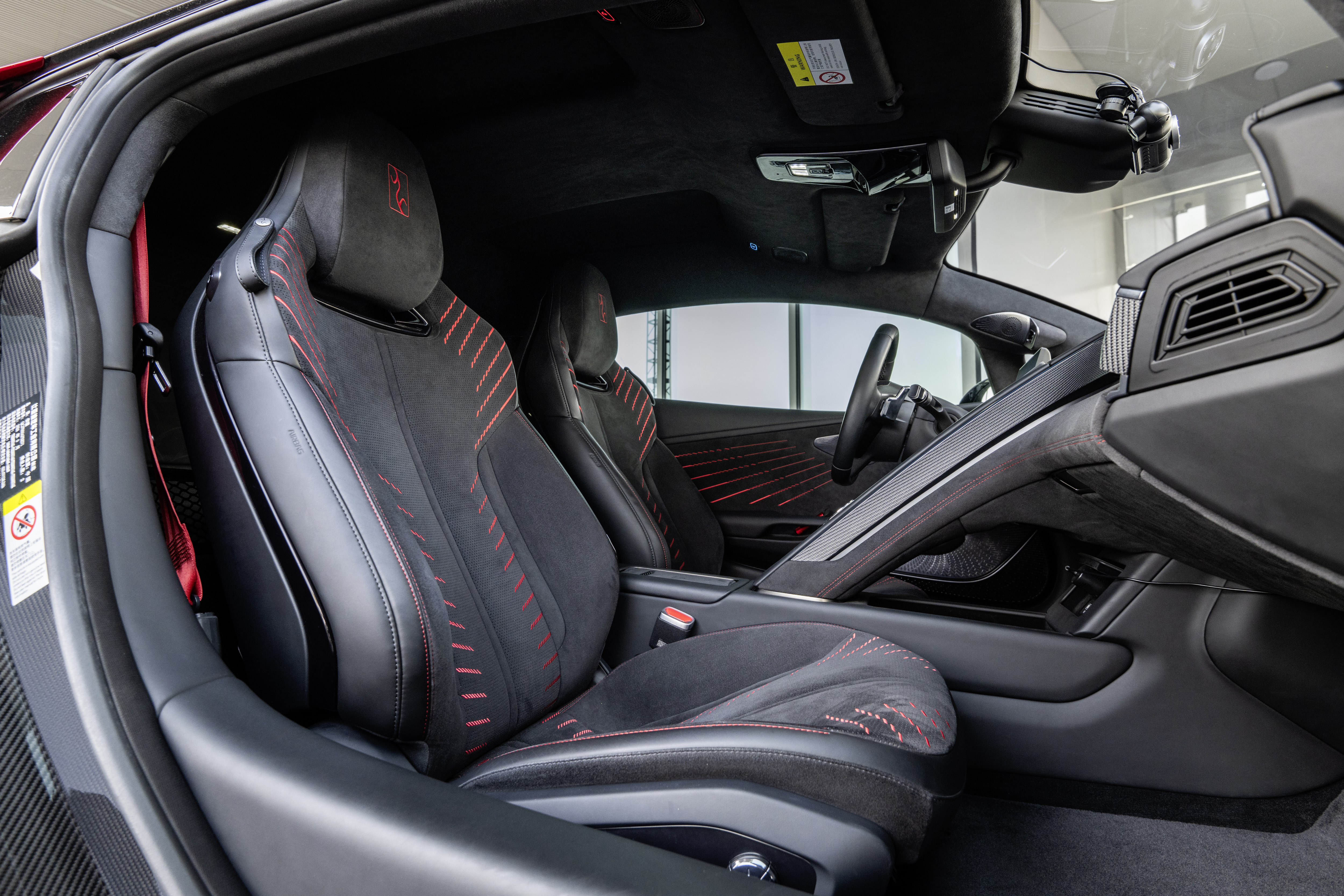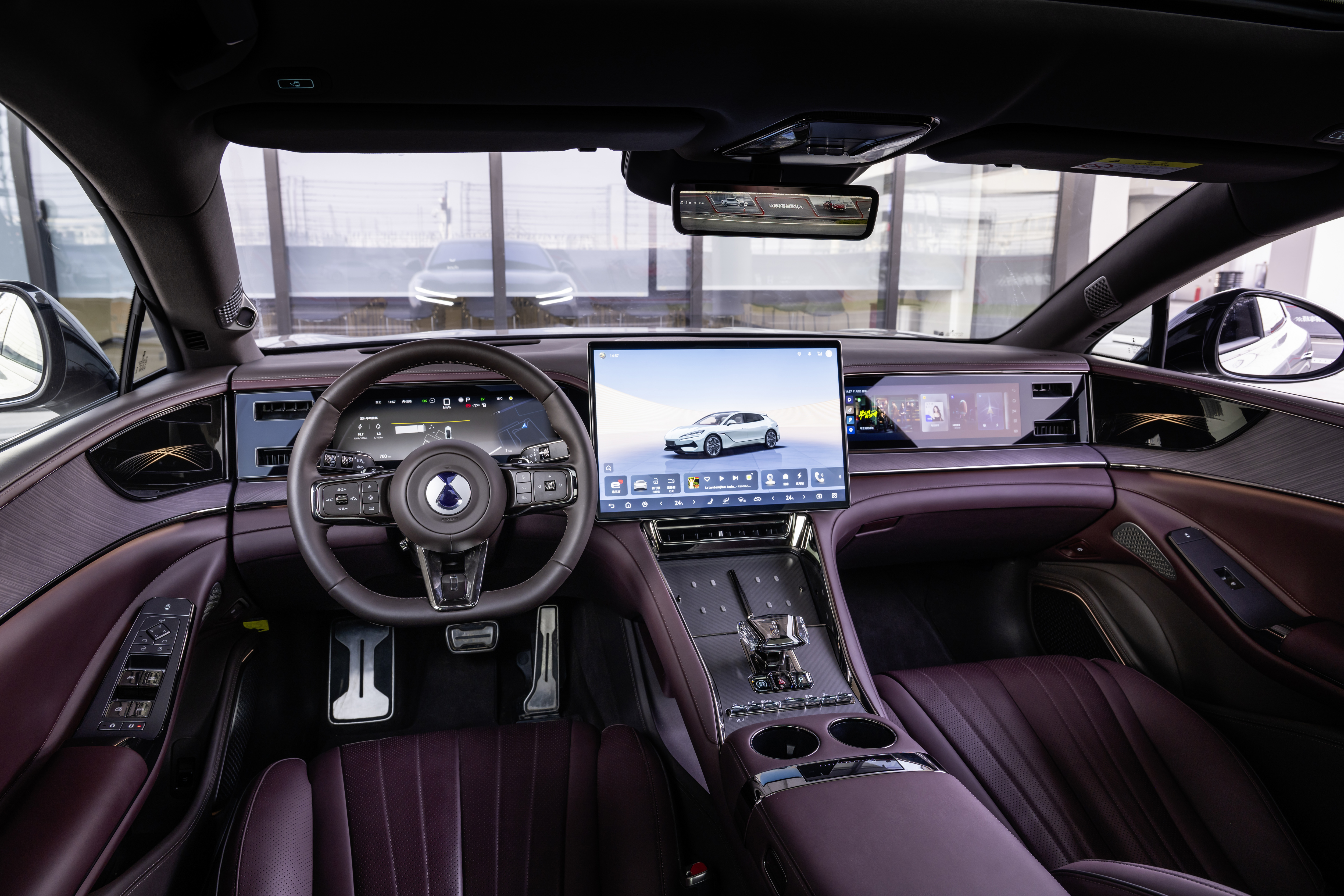 Habitaclul pune accent pe detaliile senzoriale, folosind piele Nappa și finisaje din lemn natural. Mașina dispune de guri de ventilație acționate electric și un sistem audio cu un difuzor central activ. Totul este proiectat pentru a crea o legătură între șofer și vehicul prin rafinament tactil și digitalizare avansată.
