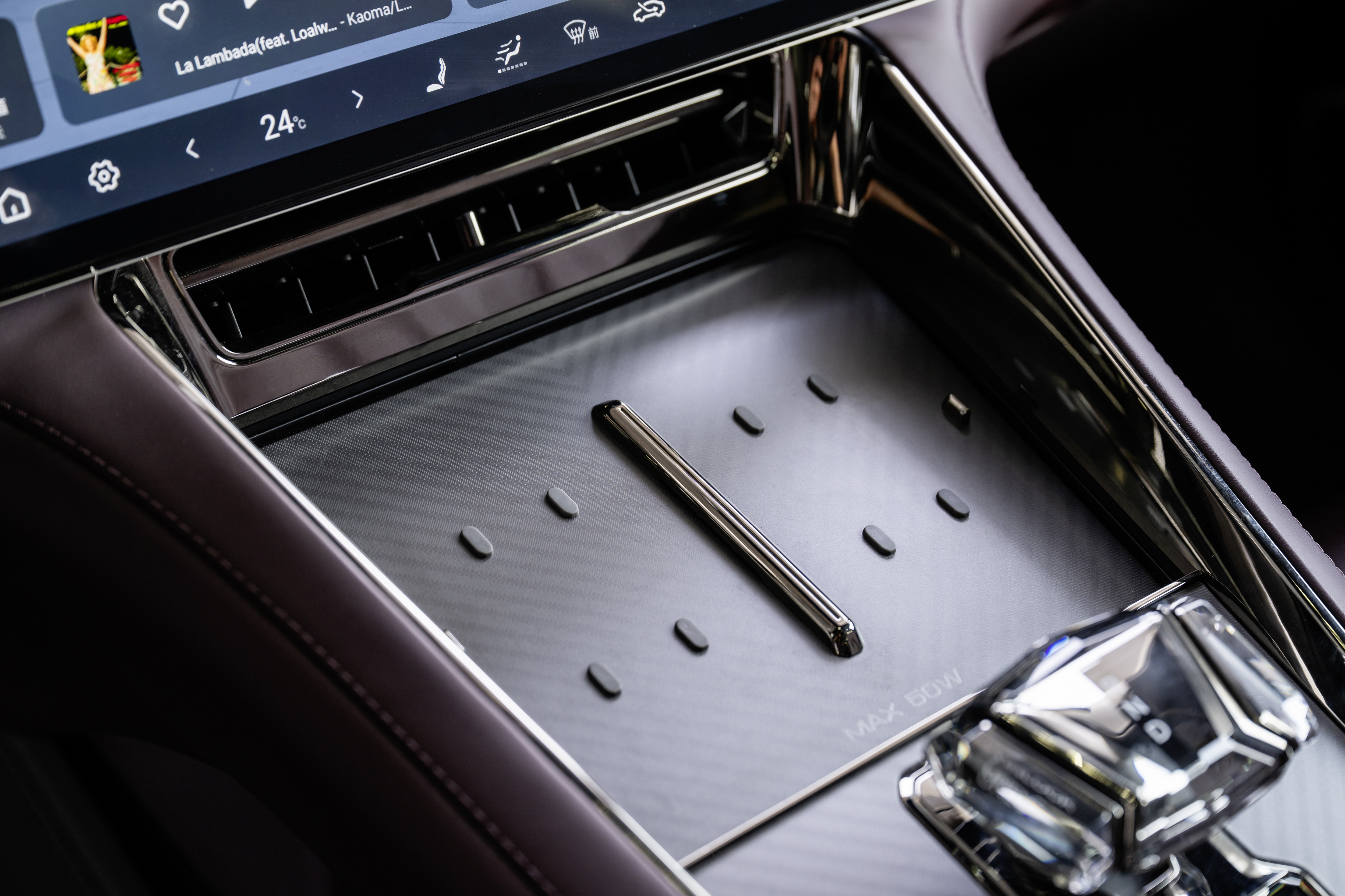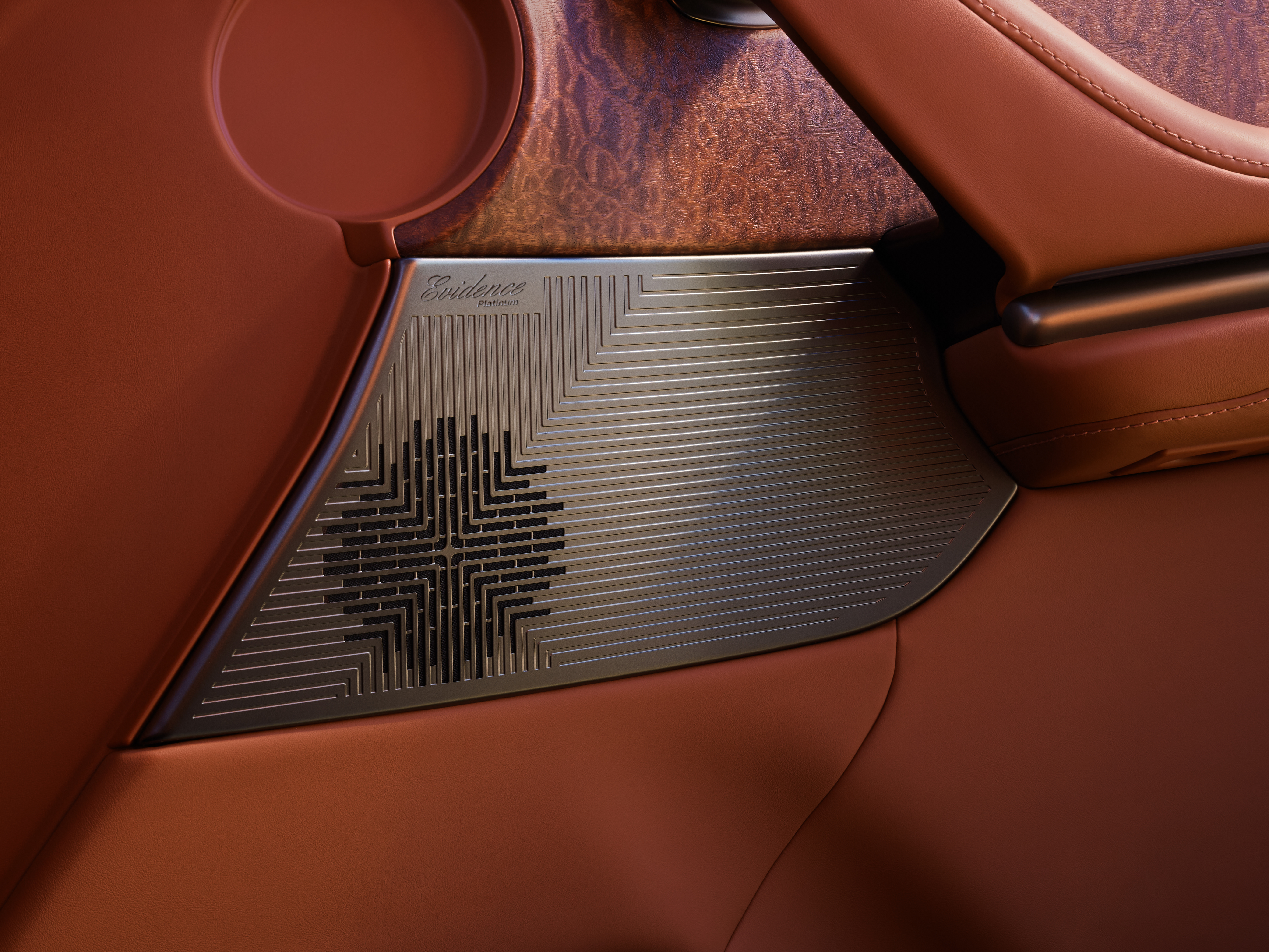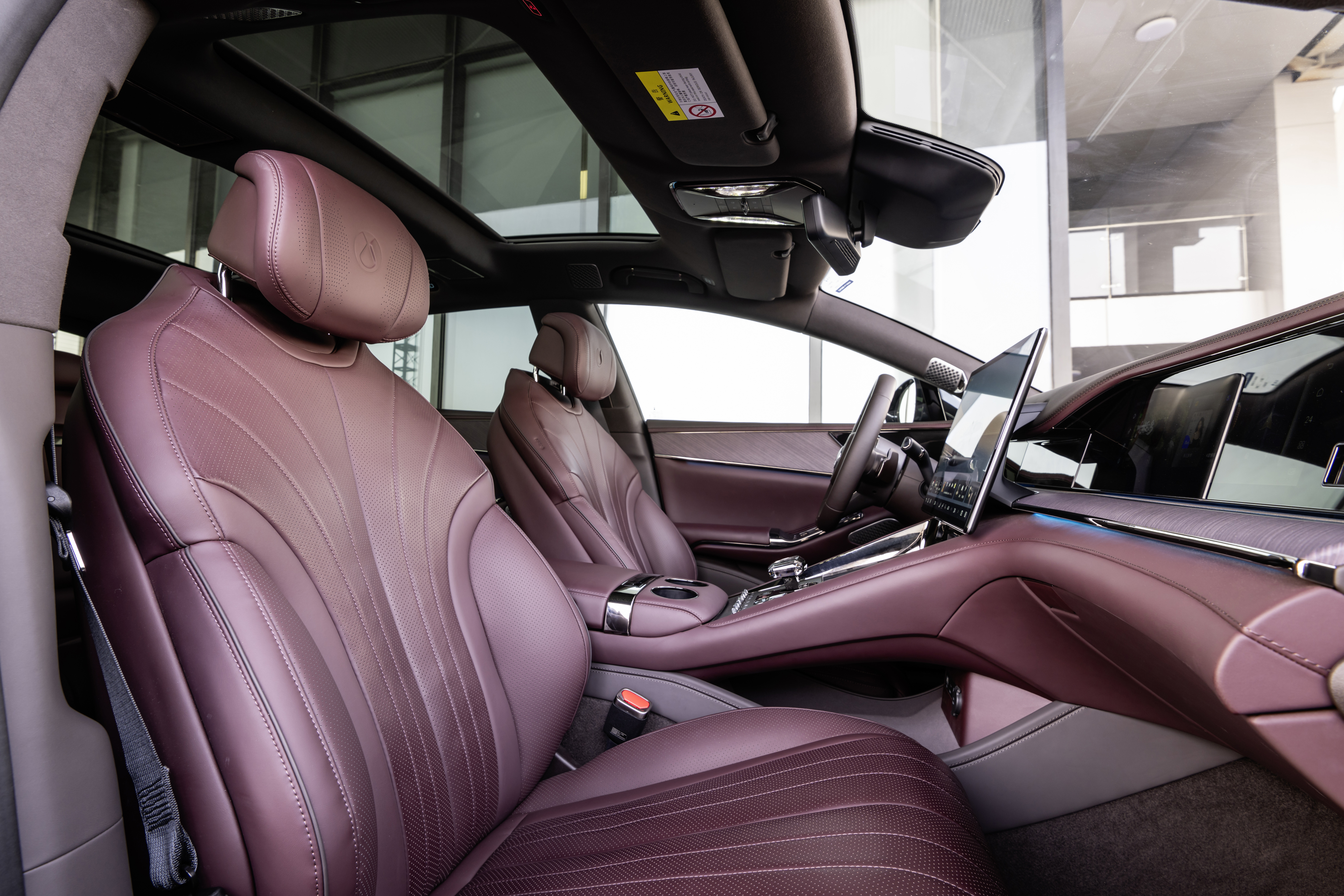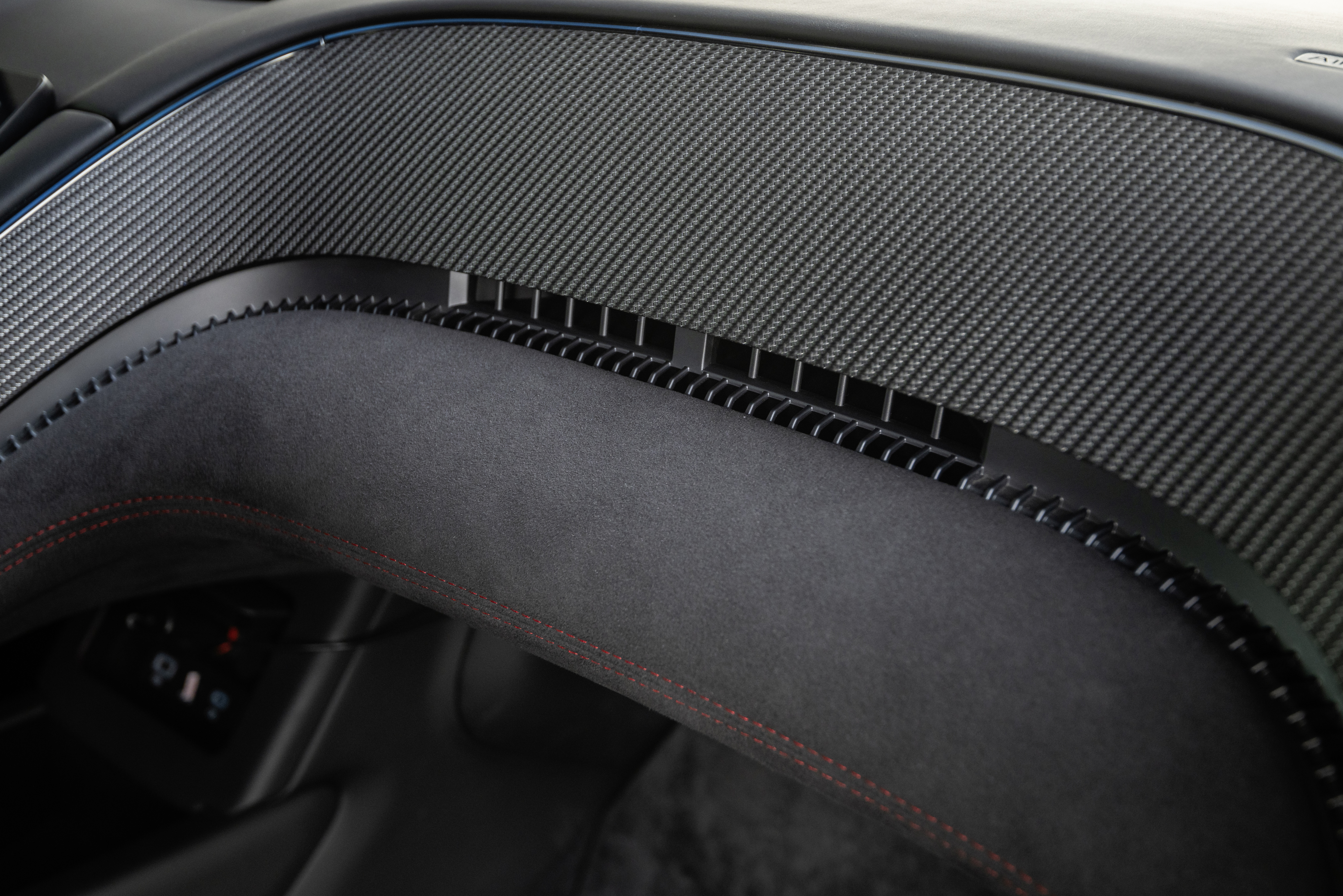 Habitaclul pune accent pe detaliile senzoriale, folosind piele Nappa și finisaje din lemn natural. Mașina dispune de guri de ventilație acționate electric și un sistem audio cu un difuzor central activ. Totul este proiectat pentru a crea o legătură între șofer și vehicul prin rafinament tactil și digitalizare avansată.
