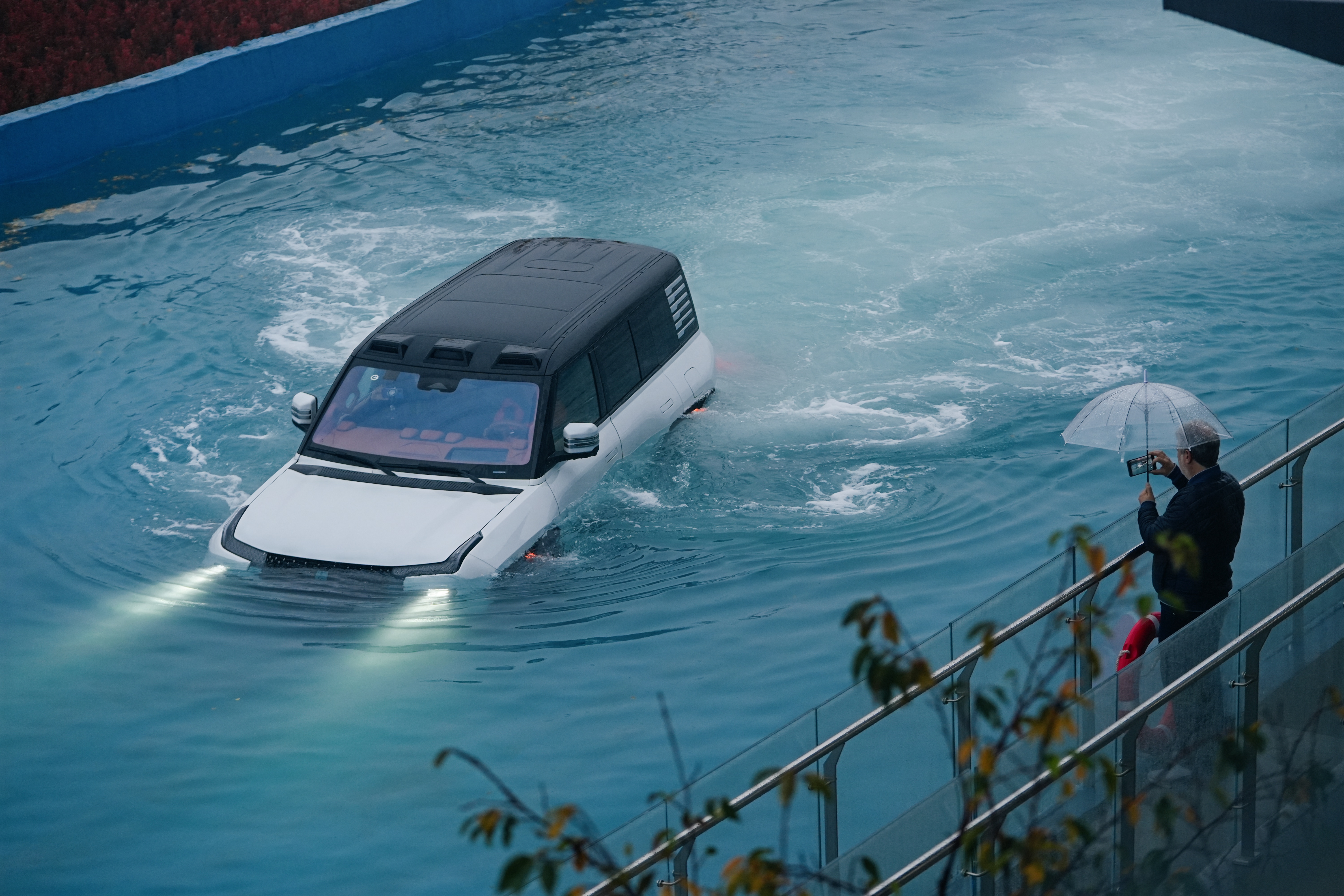 Demonstrația de flotabilitate a SUV-ului electric de lux Yangwang U8 a fost unul dintre momentele de curiozitate majoră pentru jurnaliștii din toată lumea prezenți la Zhengzhou.