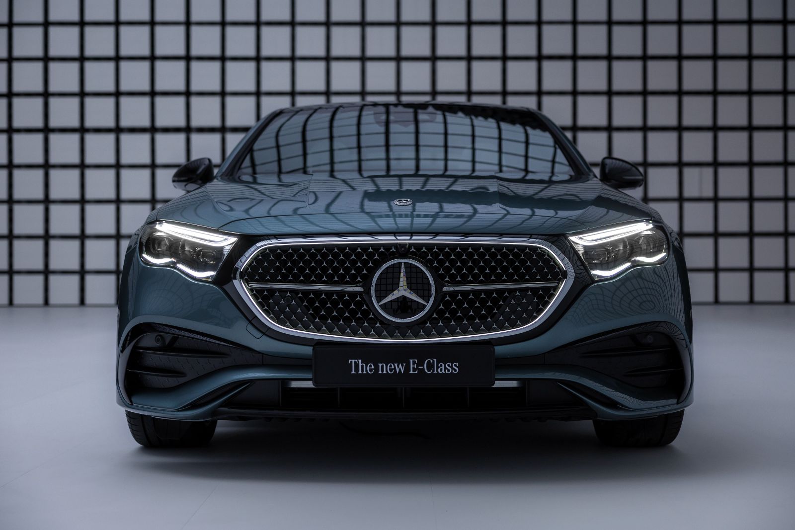 Partea frontală intră acum pe linia gamei EQ. Nu în totalitate, dar se observă clar influențele: o grilă frontală ceva mai curată, pe care o poți comanda – în premieră – cu sistem de iluminare și în diverse stilizări – în funcție de linia de echipare aleasă -, faruri cu semnătură luminoasă „dublă” – element distinctiv pentru Clasa E de-a lungul anilor -, și o capotă dominată de clasicele „powerdomes” – acele umflături proeminente trase de-a lungul ei.