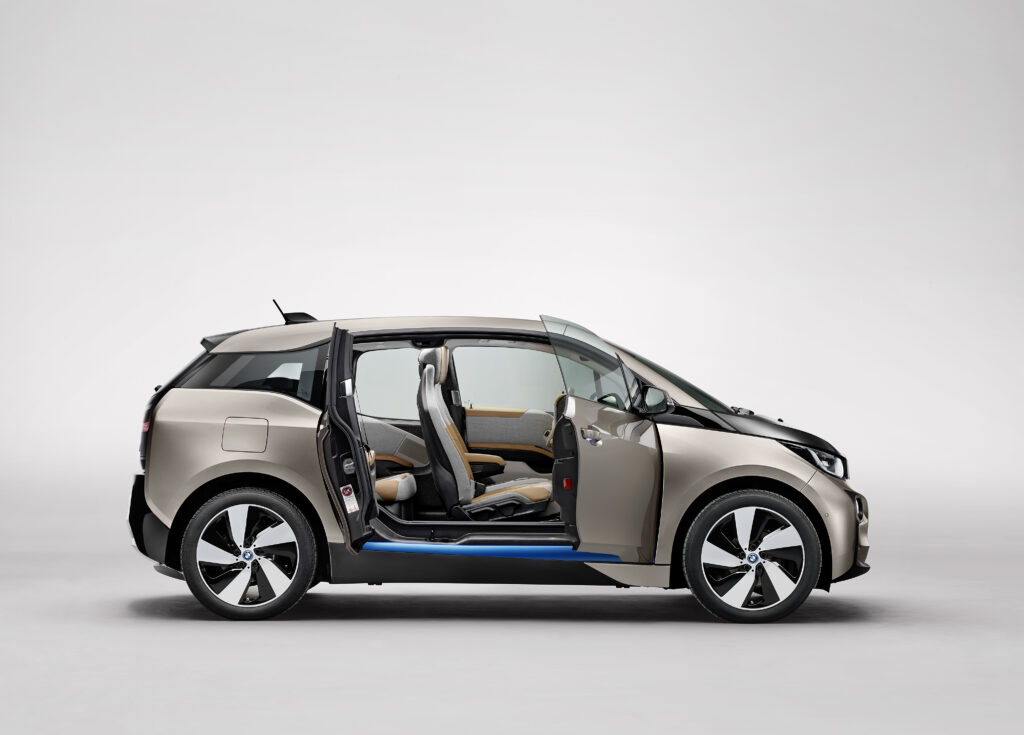 170 CP, 250 Nm și undeva între 130 și 160 km autonomie dintr-o baterie Li-ion de 22 kW capacitate brută. Distribuție egală a maselor pe cele două punți și roți motrice spate, cât să fie clar că cine se află la volan manevrează un BMW, o celulă de rezistență din CFRP (polimer ranforsat cu fibră de carbon), material pe care BMW îl folosește cu larghețe și azi pentru sportivele cu ecuson M, magneziu pe ici, pe colo, materiale reciclate, o masă proprie de doar 1.195 de kilograme, dintre care 230 îi reveneau bateriei și o lungime de sub 4 metri – mai exact, 3.999 mm.