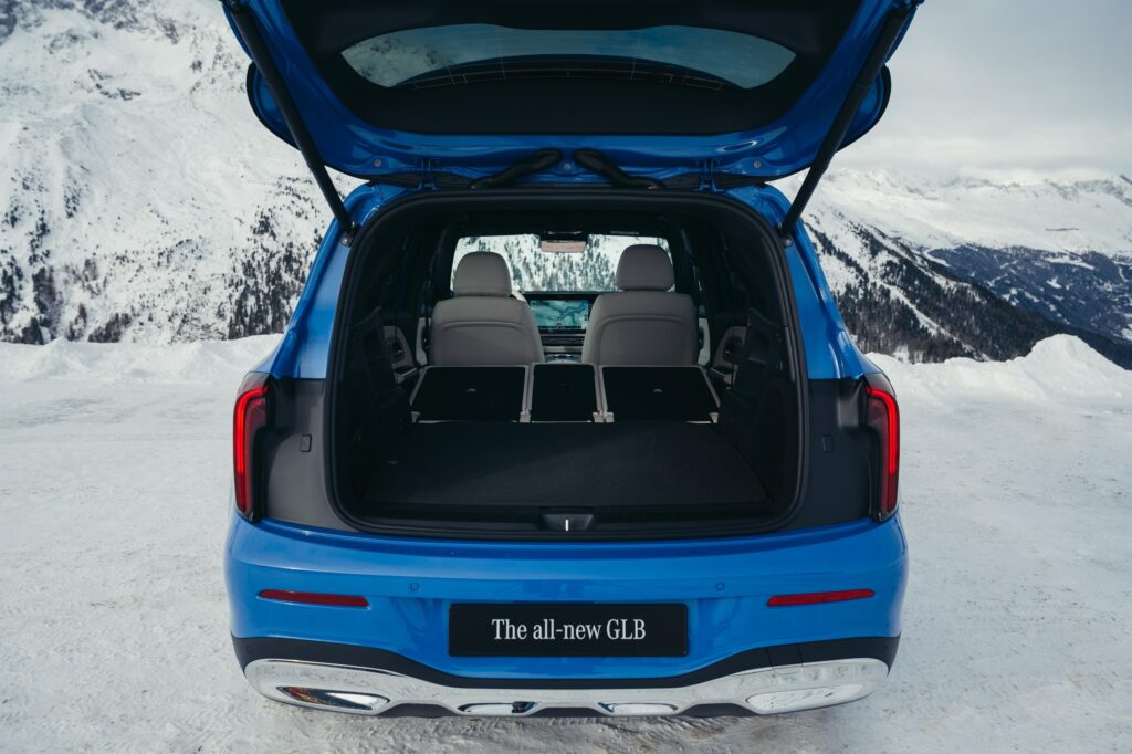 În configurația cu șapte locuri, noul GLB aduce un centimetru în plus față de EQB (-2 mm față de vechiul GLB) în dreptul spațiului disponibil la cap pentru pasagerii de pe al treilea rând. Ca să citez din comunicatul de presă, pe cele două scaune vor putea călători pasageri cu o înălțime de 1,71 metri. Cum am peste 1,8 metri, n-am încercat să-mi contorsionez oasele în exemplarul expus la eveniment, mai ales că spațiul din dreptul picioarelor și al genunchilor variază și în funcție de cât de înclinate sunt spătarele celui de-al doilea rând de scaune și de cât de mult a culisat șezutul acestora. Deci n-ar fi fost foarte relevant doar cu mine în mașină.
