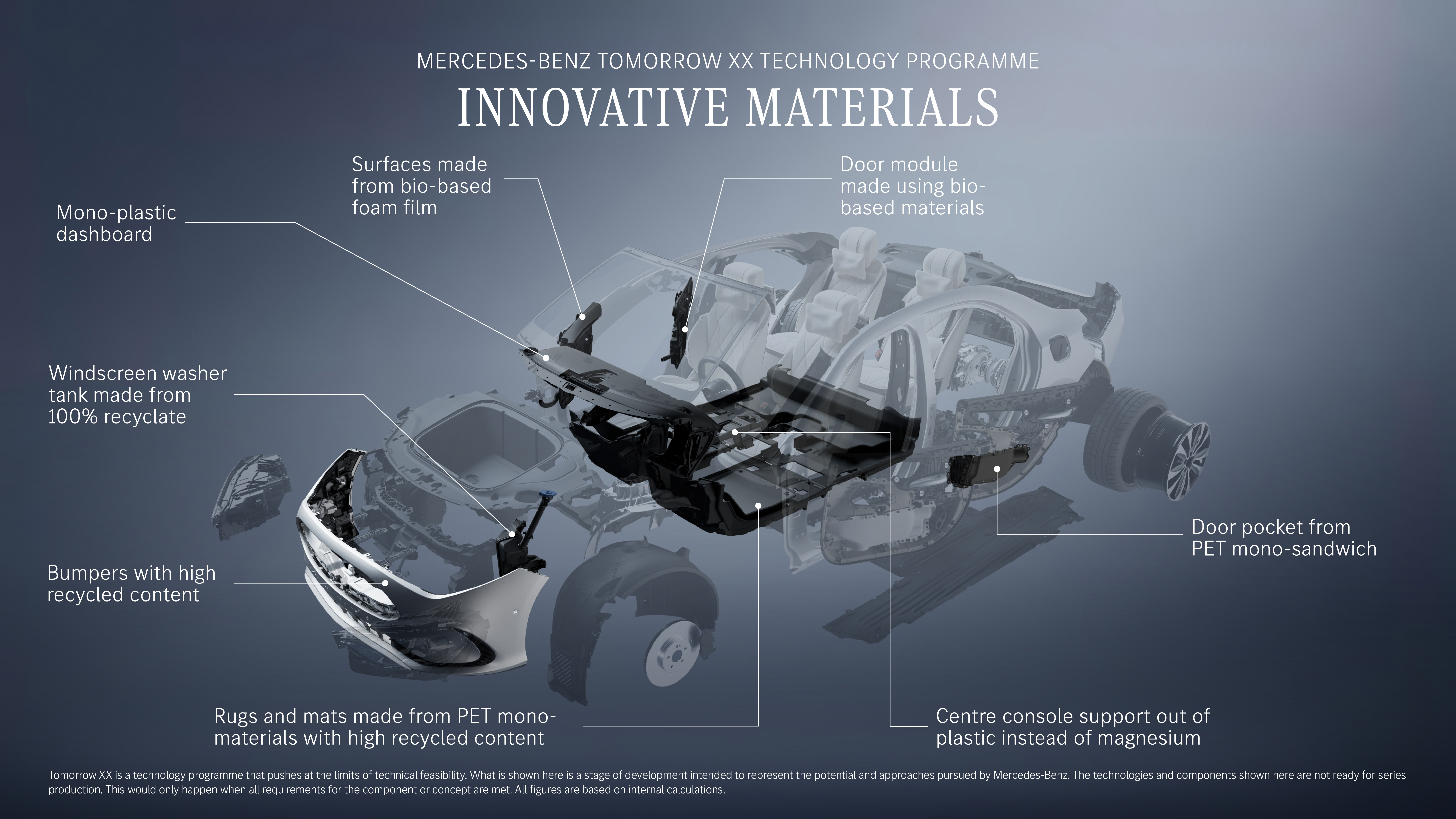 Dar dincolo de poezie există o logică economică dură: plasticul reciclat post-consum devine o resursă stabilă într-o lume cu lanțuri de aprovizionare tot mai fragile. Mercedes plănuiește ca până la 25% din părțile exterioare supuse deformărilor plastice (barele de protecție, de exemplu) să fie făcute din aceste materiale recuperate, semn că „fierul vechi” a devenit noul aur verde.