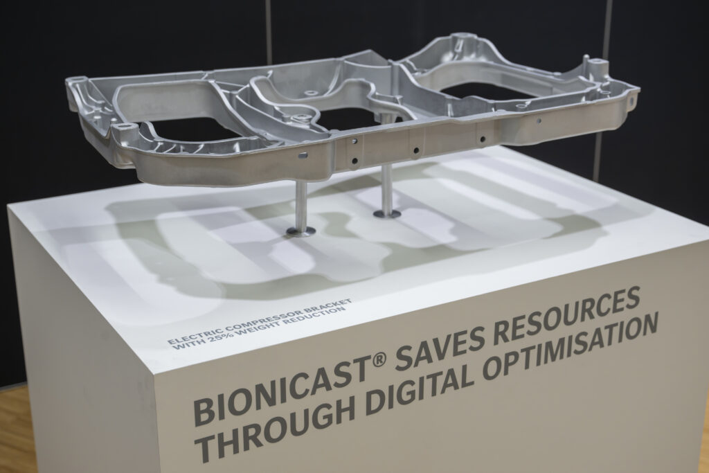 O curiozitate a vizitei de lucru de la Stuttgart a fost un suport de consolă centrală care arăta mai degrabă a sculptură bionică decât a piesă auto. E rezultatul procesului BIONICAST. Practic, inginerii au lăsat un algoritm să se joace de-a natura și să pună material doar acolo unde există stres mecanic, exact cum cresc oasele noastre. Sau ramurile copacilor. Natura nu irosește niciodată resurse, iar Mercedes a decis să-i copieze stilul.