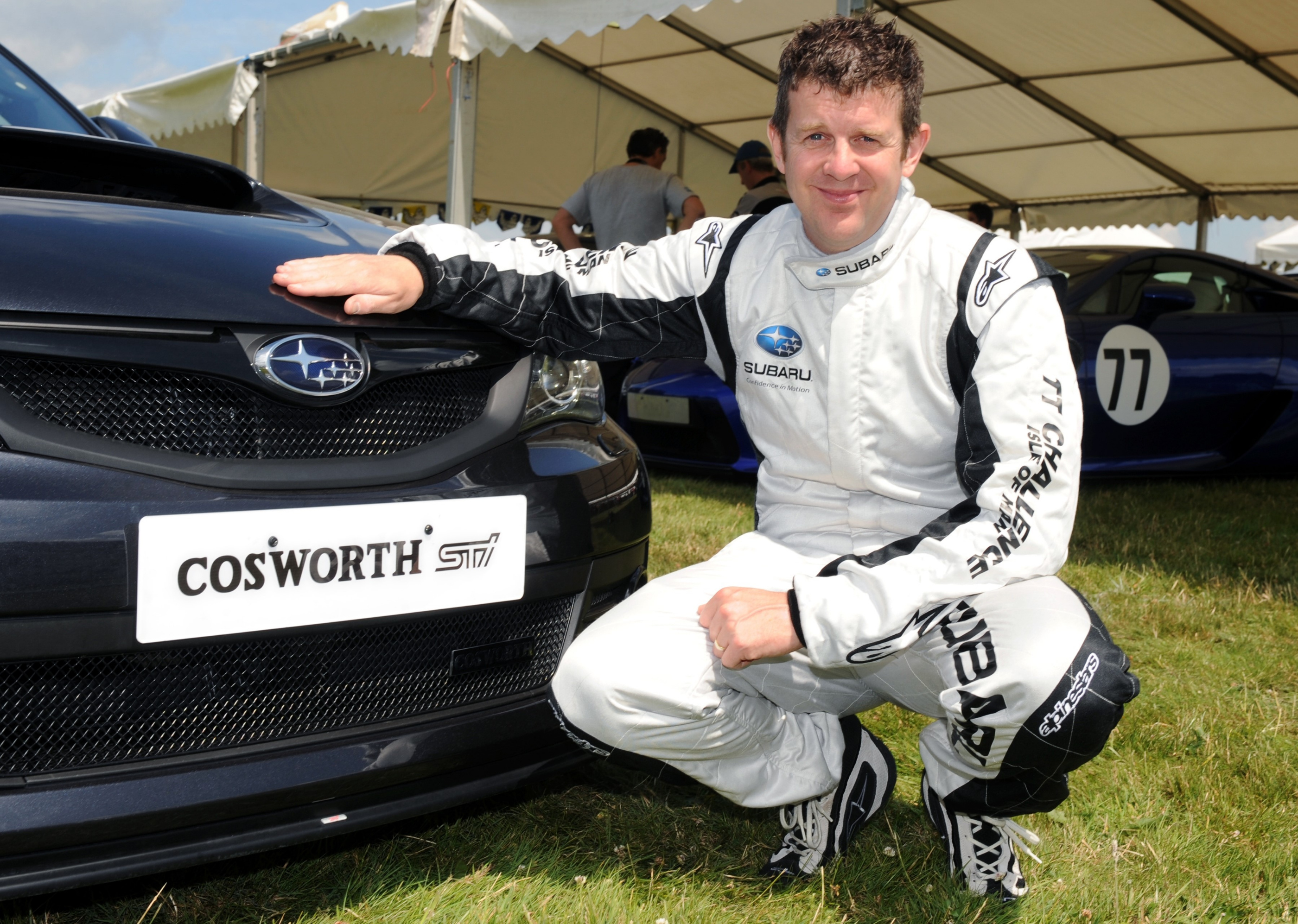Alături de Prodrive, Cosworth este o altă companie specială care și-a legat numele de Impreza STi. Aici, versiunea specială CS400 împreună cu pilotul Mark Higgins. Foto: Subaru
