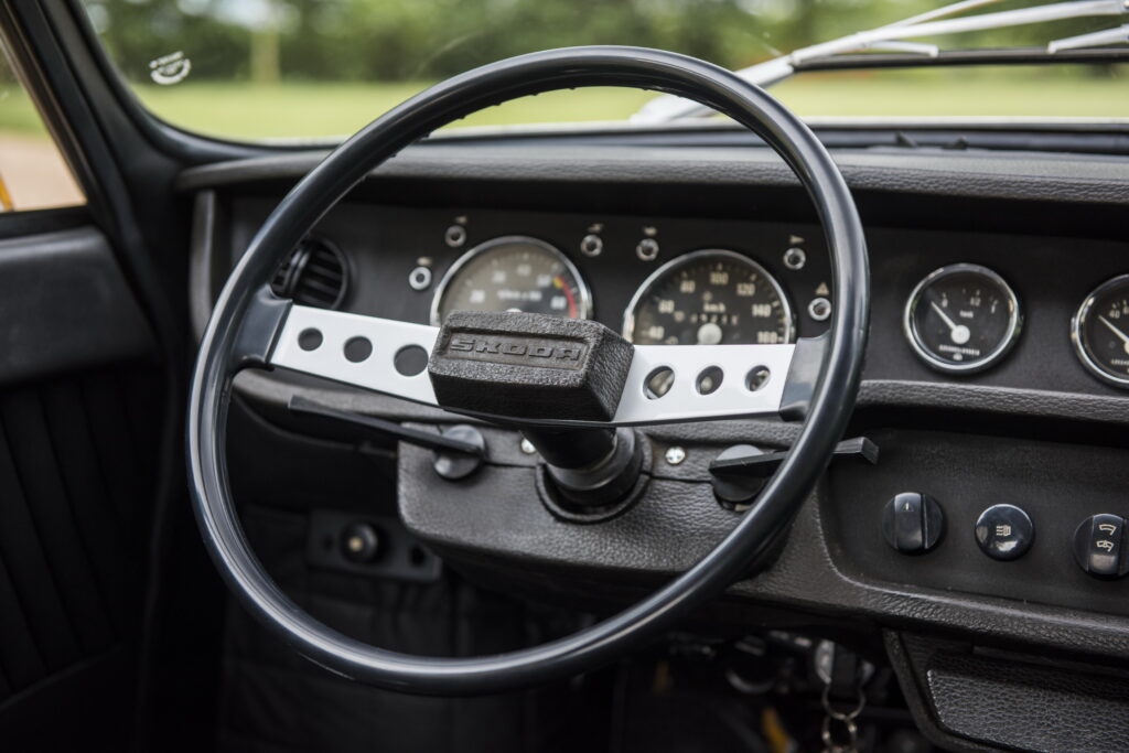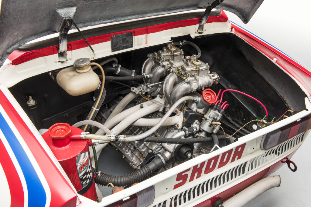 Deci, puncte de plecare: Skoda 110 R și 120 S Rally. Pe acestă bază hibridă au fost adăugate cele de trebuință unui automobil de competiții, mai exact raliuri: structură adițională de rezistență, radiator tubular, spoiler față, panouri de caroserie din oțel de grosime redusă (plafon, capotă), jante din magneziu, carcasă de protecție pentru motor din plastic ranforsat cu fibră de sticlă și două versiuni ale aceluiași motor cu patru cilindri – 1,8 litri (1.772 cc) și 2 litri (1.997 cc).
