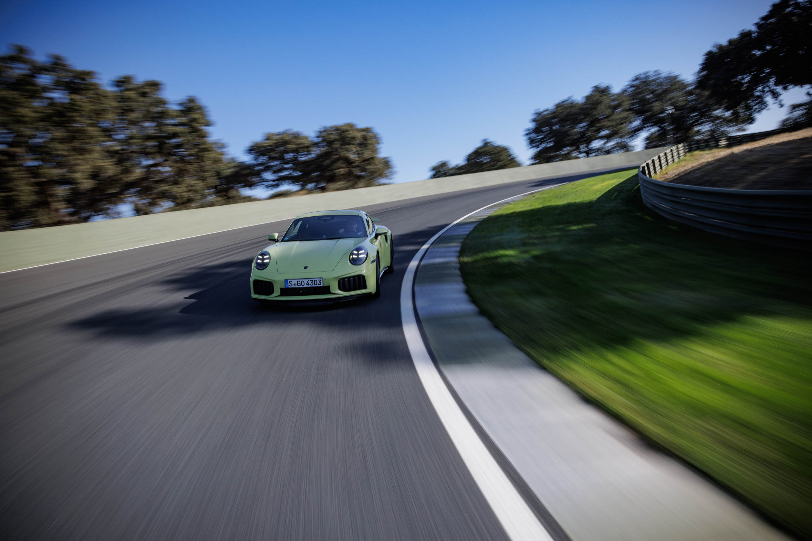 Noul Porsche 911 Turbo S (992.2) este cu 14 secunde mai rapid decât predecesorul său pe Nürburgring; adică mai bine de jumătate de secundă pe kilometru. Pare puțin doar dacă nu conștientizezi ce înseamnă o secundă în lumea sporturilor cu motor. Cu cei 61 CP în plus, cu plecare de pe loc parcurge 25,5 metri în 2,5 secunde, comparativ cu 17 m (Turbo S 992.1). Până la 200 km/h, cu start de pe loc, ajunge în doar 8,4 secunde, o îmbunătățire de fix jumătate de secundă, iar mulțumită noii tehnologii electrificate utilizată pentru turbosuflante, momentul motor maxim se menține constant pe o plajă de turații mai mare cu aproximativ 2.000 de unități. Asta chiar e impresionant.