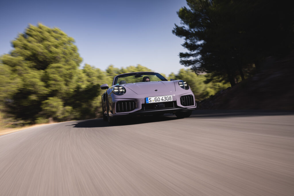 992.2 Turbo S s-a lansat concomitent în ambele versiuni de caroserie, iar așa cum era cel mai bine, până să punem coupe-ul la treabă am dat niște kilometri buni cu alternativa sa mai sexi. Recunosc că nu sunt dintre cei care ar opta pentru o decapotabilă în cazul unui model de performanță, din rațiuni de rigiditate a caroseriei și a greutății crescute – comparativ cu un coupe); atâta doar că 992.2 Cabriolet Turbo S avea să fie doar transferul către circuit, acolo unde ne aștepta varianta cu plafon din fibră de carbon, deci povestea nici că putea fi mai faină de atât. Pe de altă parte, ferice de cei care vor primi în garaj o așa mașină, zău.