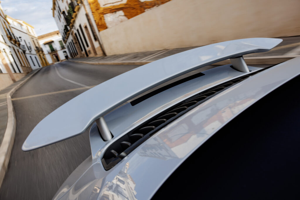 Nu poți povesti despre un Porsche 911 fără să faci măcar o referire la modul în care arată cea mai celebră siluetă din lumea auto. Spuneam mai sus că un ochi neantrenat sau neatent l-ar putea confunda ușor cu fratele său, Turbo S de primă fază a generației 991. Însă până și lui poți să-i spui că avem acum modificări de efect în zonele spoilerelor frontale și posterioare. În cazul primului, elementele verticale nu sunt doar decorative, ci fac parte dintr-un sistem de aerodinamică activă, deci se pot plia sau pot rămâne deschise complet, la fel cum și baza spoilerului este mobilă și are rol de difuzor de aer. Mai mult, ascunse vederii sunt elemente mobile care odată deschise pot asigura un flux de aer mărit care ajunge către sistemul de frânare, pentru a-i grăbi răcirea în cazul utilizărilor dinamice ale mașinii; practic, micile detalii ascunse care fac marile diferențe.