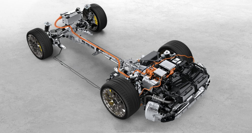 Apoi, pentru încă un plus dinamic, cuplat la sistemul de 400 volți a fost și evoluția lui PDCC, adică ehPDCC, sistemul de control dinamic al șasiului, de acum cu un plus conferit de controlul electro-hidraulic al său (de unde și denumirea oficială: electro-hydraulically controlled Porsche Dynamic Chassis Control). Mai pe românește, dacă până acum vi se părea că un Porsche cu PDCC este dinamic, stați să vedeți ce poate după adăugarea prefixului „eh” în poveste.