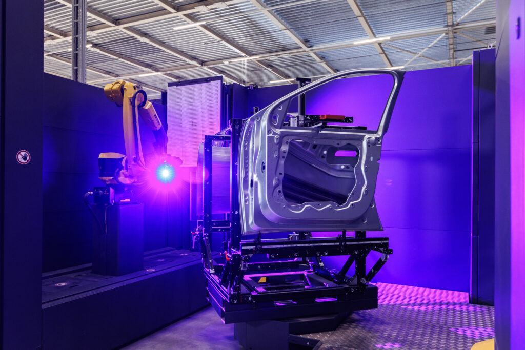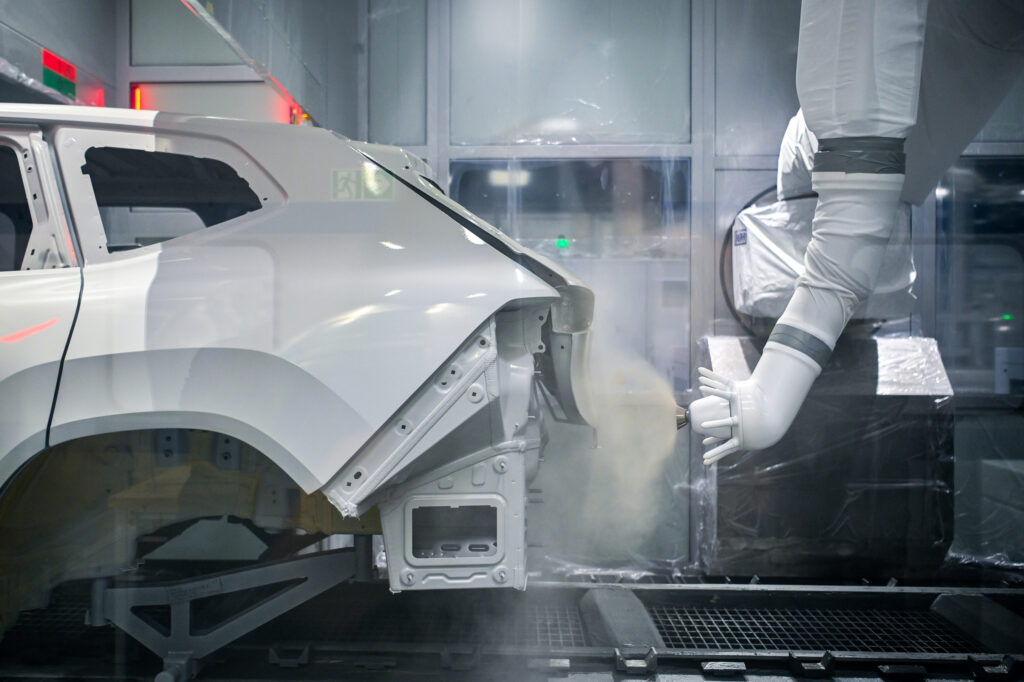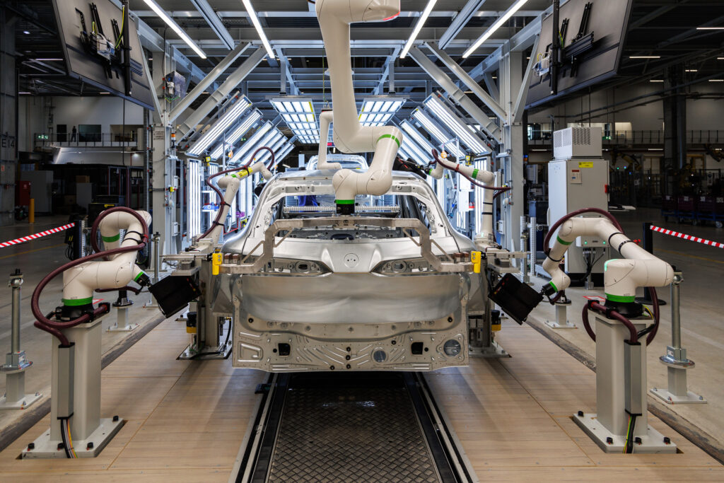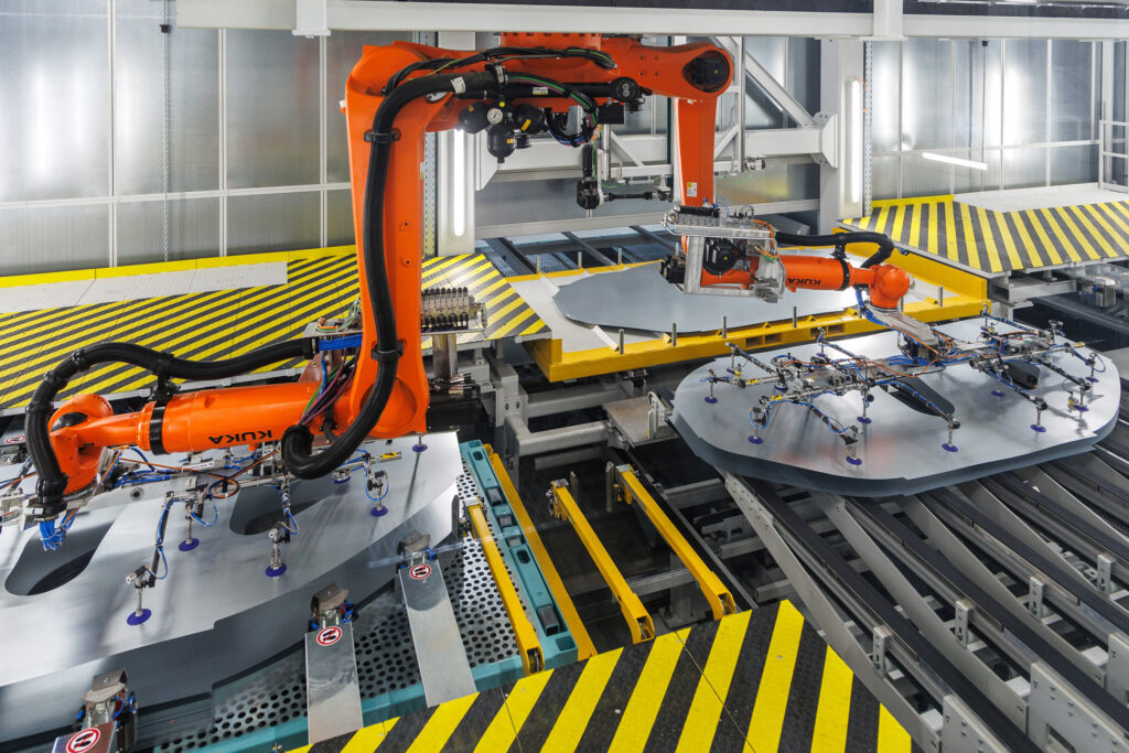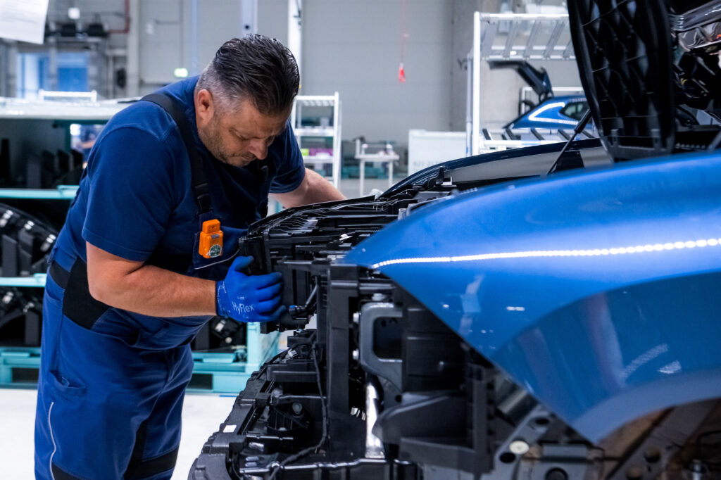Componentele realizate în secția de presaj ajung ulterior în atelierul de caroserie, acolo unde sunt îmbinate pentru a lua forma finală a mașinii. În timpul vizitei noastre la uzină activitatea este mai degrabă una de test, în care se fac ultimele reglaje pentru startul producției de serie.