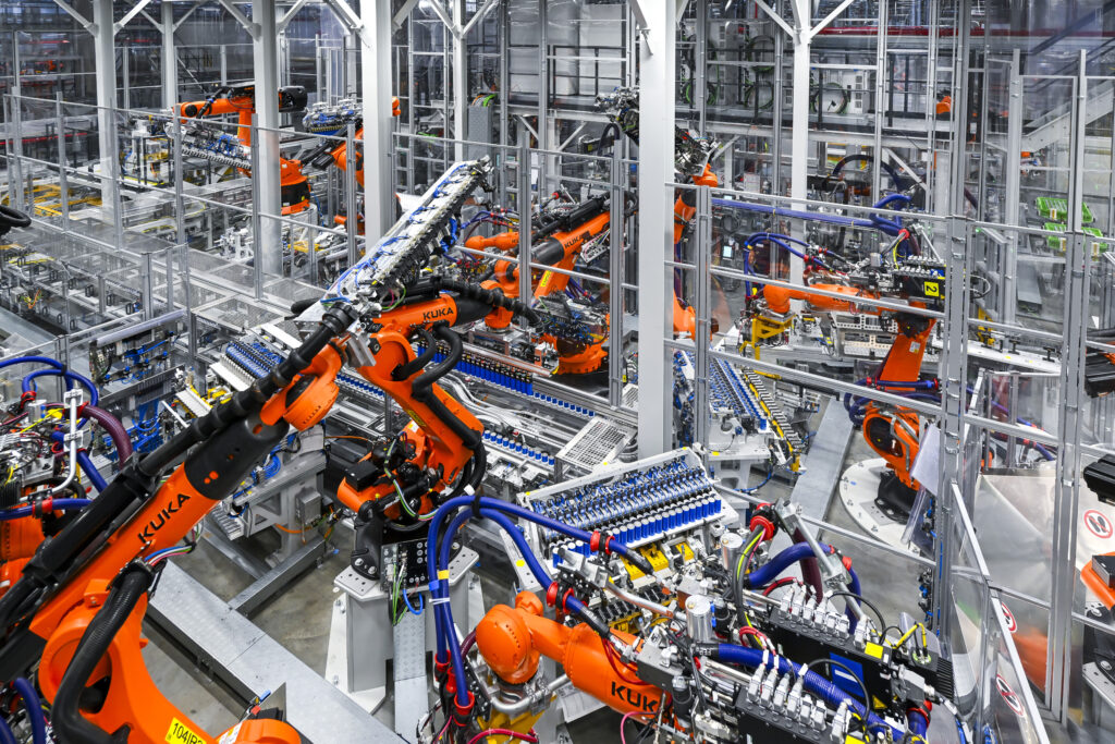Celulele care sosesc de la furnizori externi sunt transferate în secția de asamblare dedicată bateriilor. Aici sunt grupate și conectate la o instalație de răcire, curățate cu laser și sudate, iar în pasul următor se aplică un strat de spumă pentru protecția tuturor elementelor. Urmează închiderea celulelor bateriei și nituirea pentru fixare. Pasul final este reprezentat de montarea pe baterie a unei unități centrale de control (Energy Master) și aplicarea unui adeziv special cu rol de izolator.