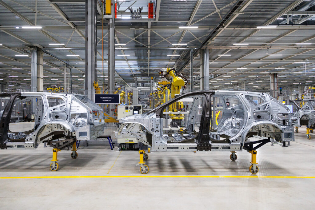 În total, în funcție de dimensiunile necesare, linia de presaj a uzinei din Debrecen poate produce zilnic peste 10.000 de părți componente, iar la finalul liniei de producție are loc controlul calității, care se realizează inclusiv cu instrumente de Inteligență Artificială. Ce înseamnă asta mai exact? Gândește-te la o aplicație software care compară o serie de imagini de referință stocate pe calculator cu imaginile componentelor de pe linia de producție, preluate prin intermediul unor camere video.