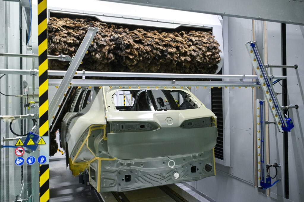 Apropo de asta, apa este încălzită la o temperatură de numai 65 de grade Celsius, comparativ cu cele 90 sau 120 de grade Celsius în cazul unui atelier de vopsitorie tradițional, ceea ce contribuie din nou la reducerea emisiilor.