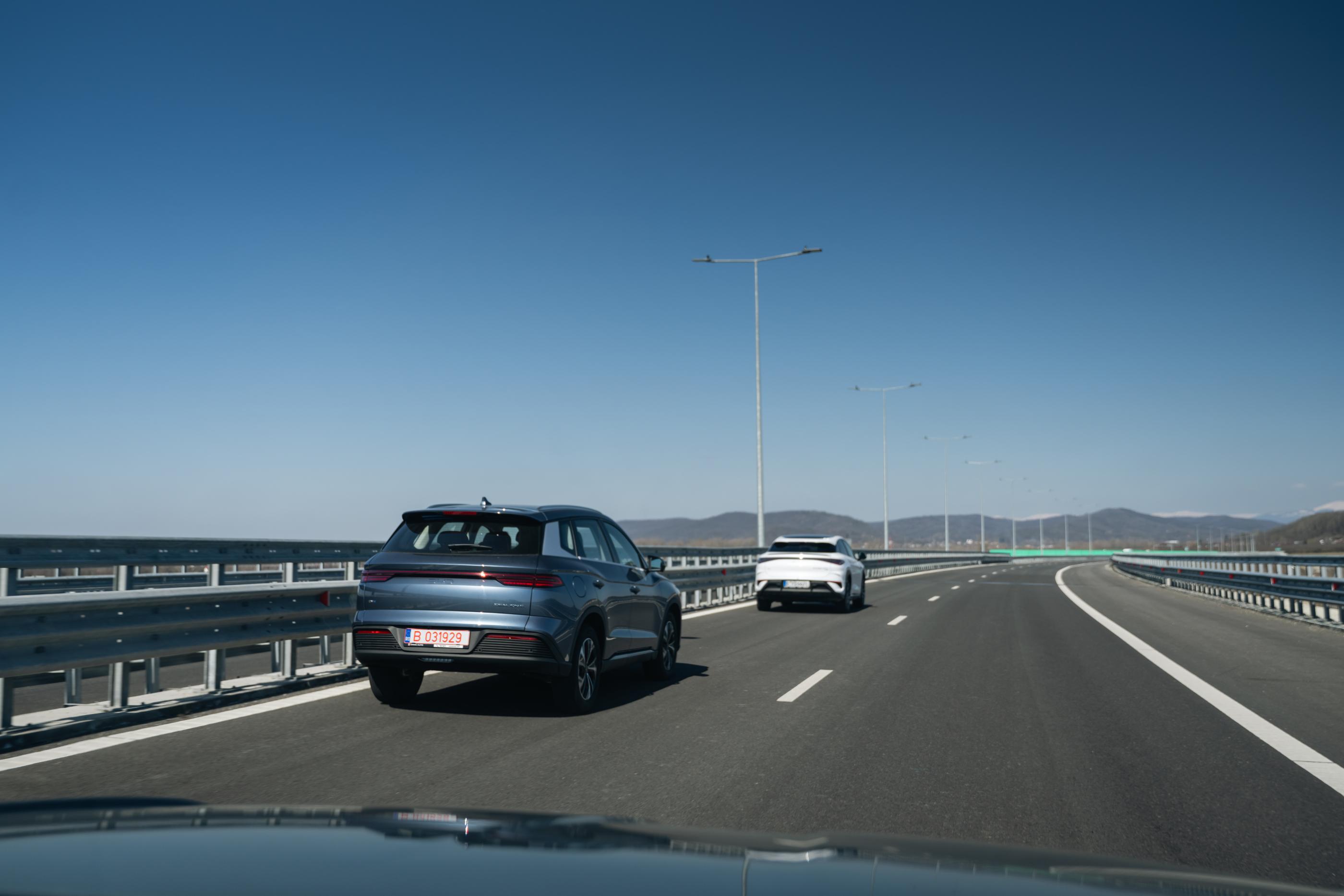 Vârful de gamă, adică fix mașina pe care am luat-o cu noi în acest experiment, se numește Sealion 7 Excellence AWD. Tot două motoare, tot 530 de cai-putere, dar baterie mai mare de 91,3 kWh, cât să asigure o autonomie maximă WLTP de 502 kilometri.