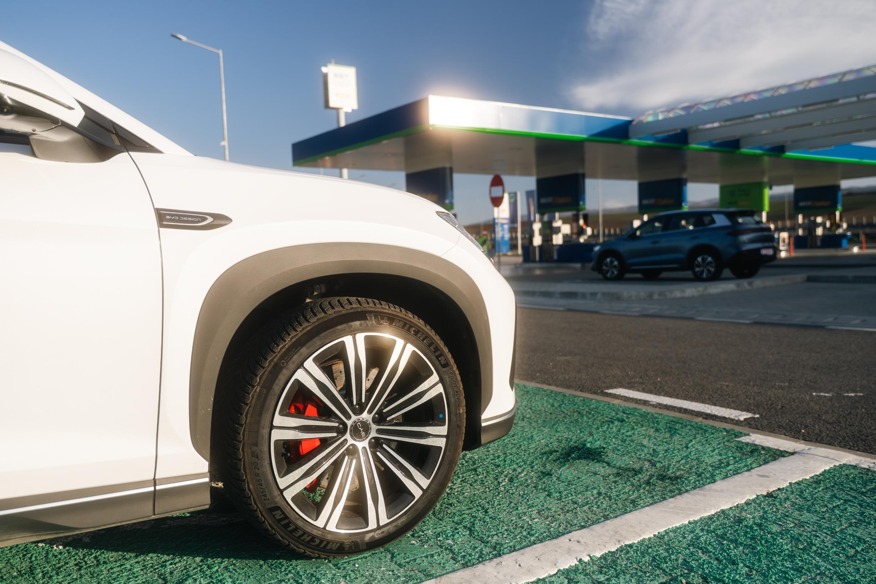 Tot tipică a fost și abordarea în ceea ce privește alimentatul. De câte ori va fi nevoie și cât va fi nevoie. În cazul electricei am decis ca, de preferat, Tudor să stea până la 80%, însă dacă va fi nevoie de câteva procente în plus peste limita asta, pentru a ajunge la următoarele stații ultrarapide OMV eMotion de 300 kW de pe drum, nu se supără nimeni. Nu măsurarea timpului petrecut la stații a fost scopul experimentului nostru.