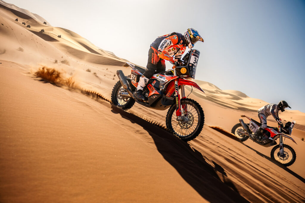 • Pilotul echipei Dacia Sandriders a ocupat locul trei pe traseul de 323 de kilometri de miercuri, iar timpul său a fost suficient de bun pentru a urca pe prima loc la general cu un avans de 3 minute și 25 de secunde.