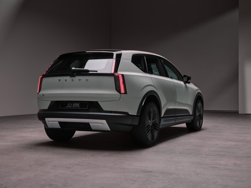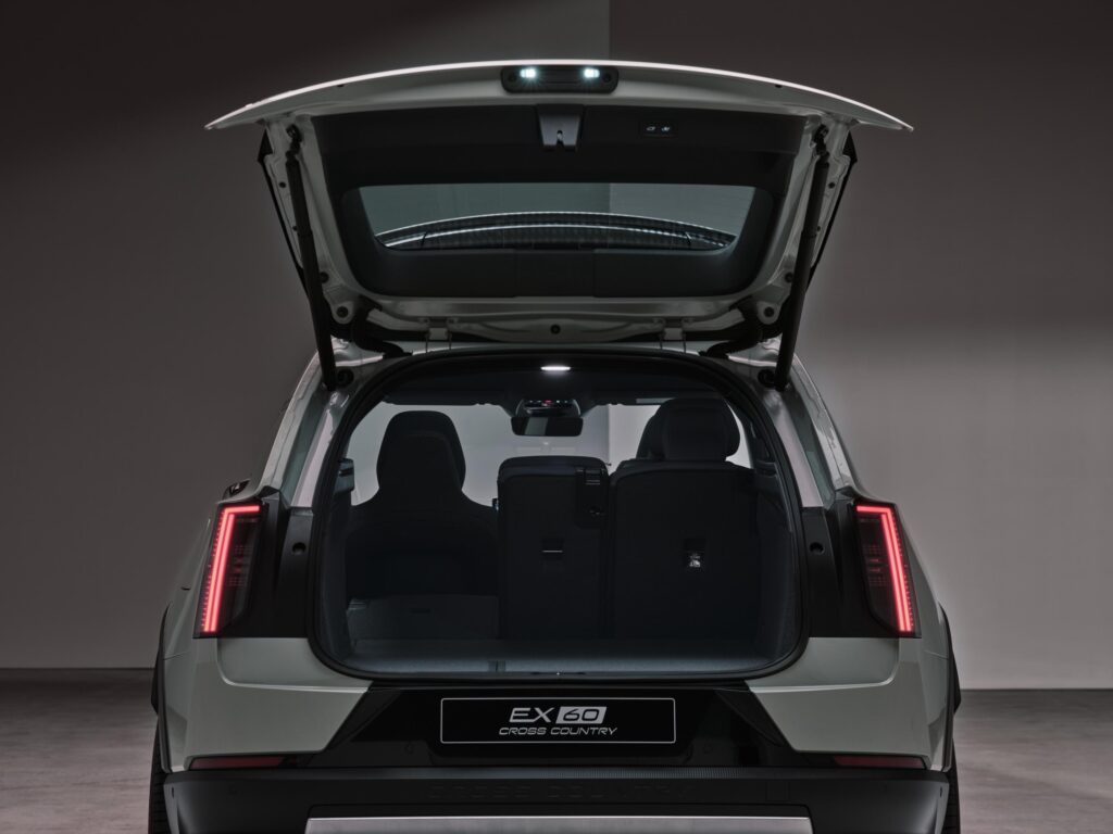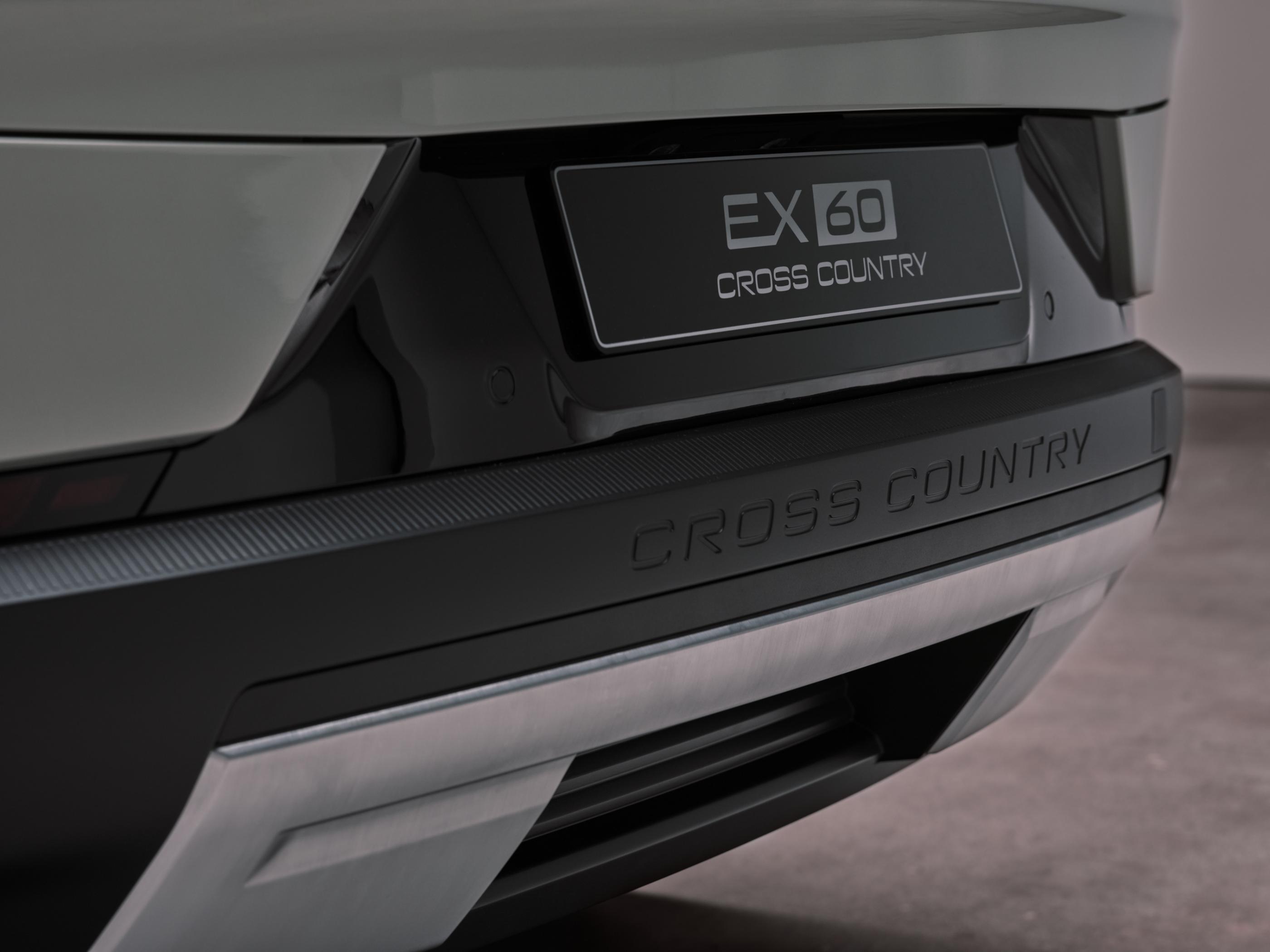 • De asemenea, noul EX60 va fi disponibil și în versiune Cross Country: gardă la sol mai mare cu 20 de mm (+ alți 20 mm în cazul variantelor cu suspensie pneumatică), pachet exterior special, culoare nouă de caroserie (Frost Green).