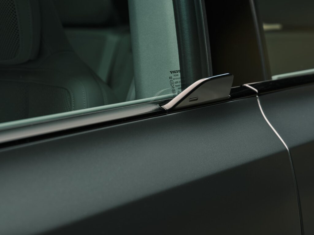 • Tunelul median dintre șofer și pasagerul din dreapta aproape că a dispărut, zona fiind transformată într-un spațiu generos pentru depozitarea obiectelor. Suporturile de pahare au fost integrate pe un mecanism care culisează, într-un stil asemănător celui prezent pe mezinul EX30.