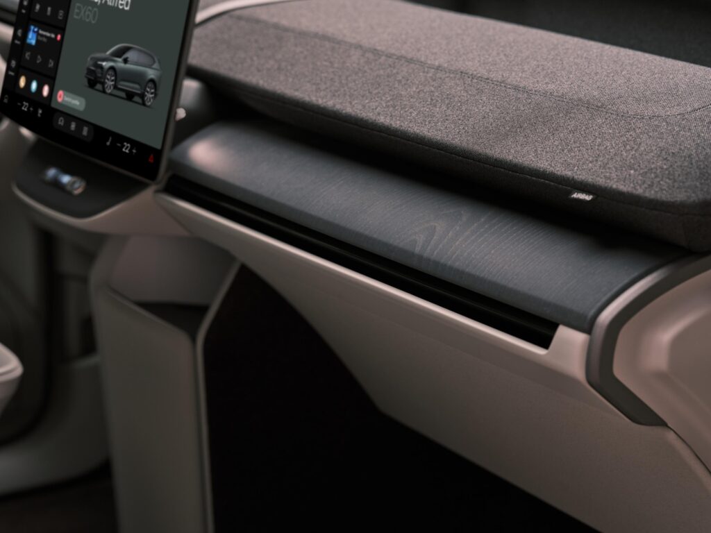 • Interiorul lui EX60 mizează și el pe filozofia minimalistă cu care ne-a obișnuit constructorul. Spre deosebire de restul electricelor din gamă, EX60 are un volan nou, iar ecranul central a fost poziționat landscape. Instrumentarul de bord este digital și similar cu cel întâlnit, de exemplu, pe EX90.