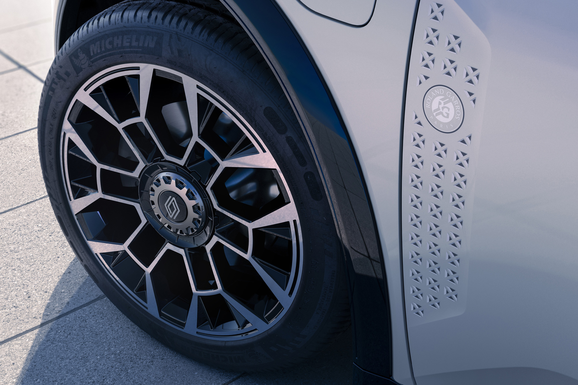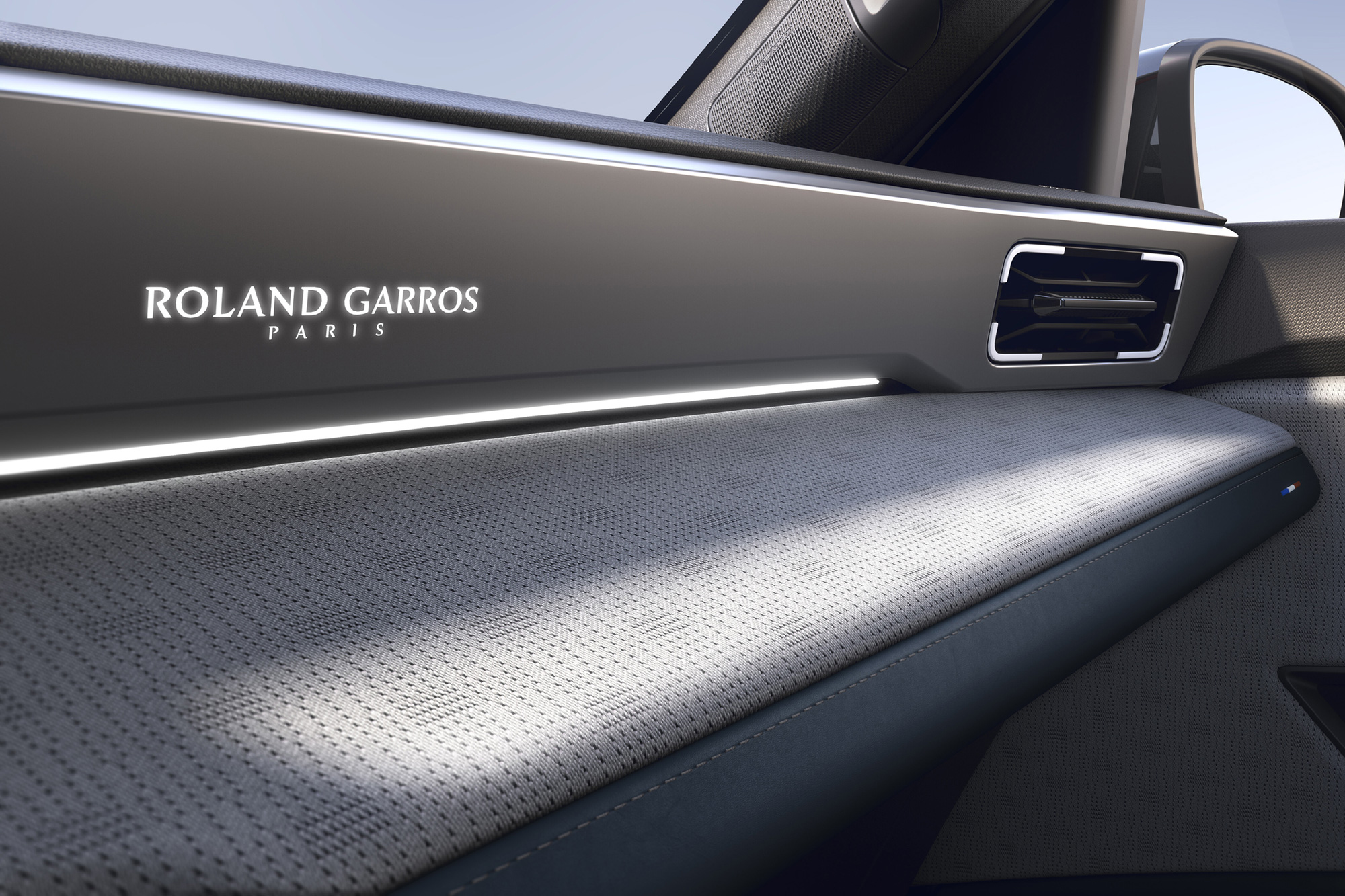 • Logo-ul Roland Garros este vizibil în partea de jos a portierelor frontale, împreună cu reprezentarea arhitecturală a unui stadion, iar plafonul include un finisaj textil.