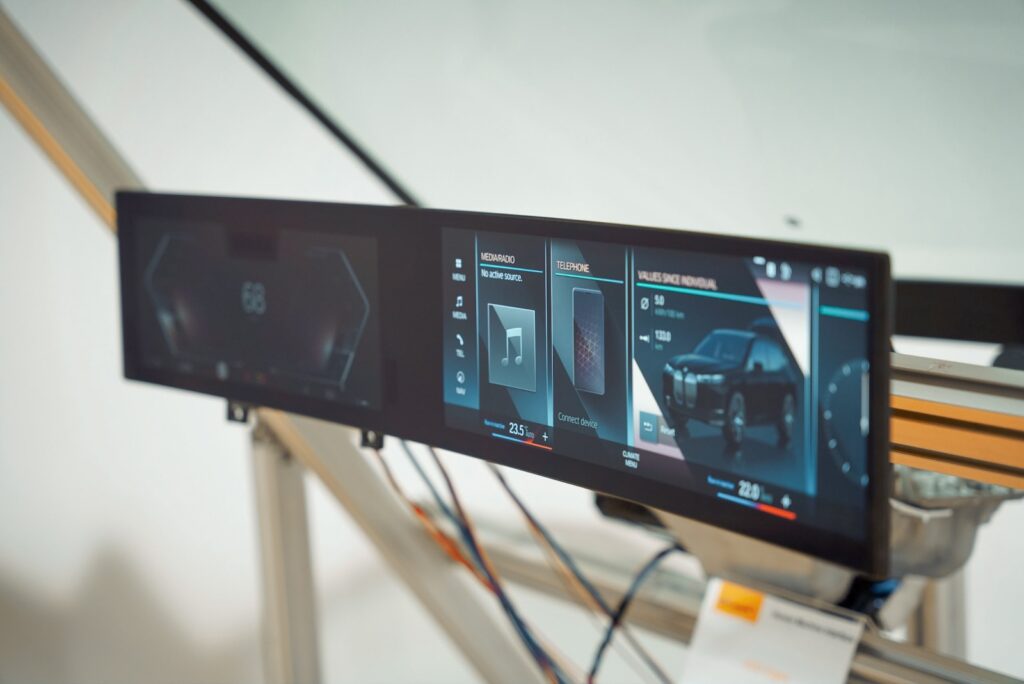 Pe lista de clienți se află nume sonore: Mercedes-Benz, BMW, Stellantis, Renault, Dacia. În vitrină există chiar și display-ul folosit de noul model electric BMW i4, pe care oamenii de aici l-au dezvoltat în ultimii ani.