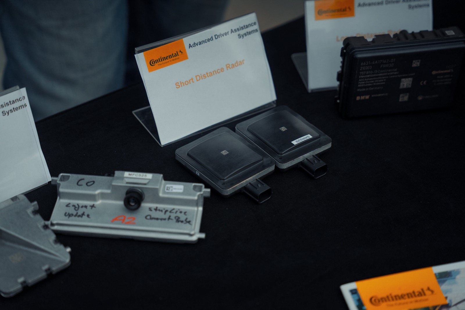 Încă de la intrarea în parcarea din fața sediului Continental din Timișoara am putut observa un camion MAN și un manechin de statura unui copil. Ceva mai încolo se aflau o motocicletă Horex și un sedan Mercedes-Benz în jurul căruia roiau deja mai mulți angajați Continental.