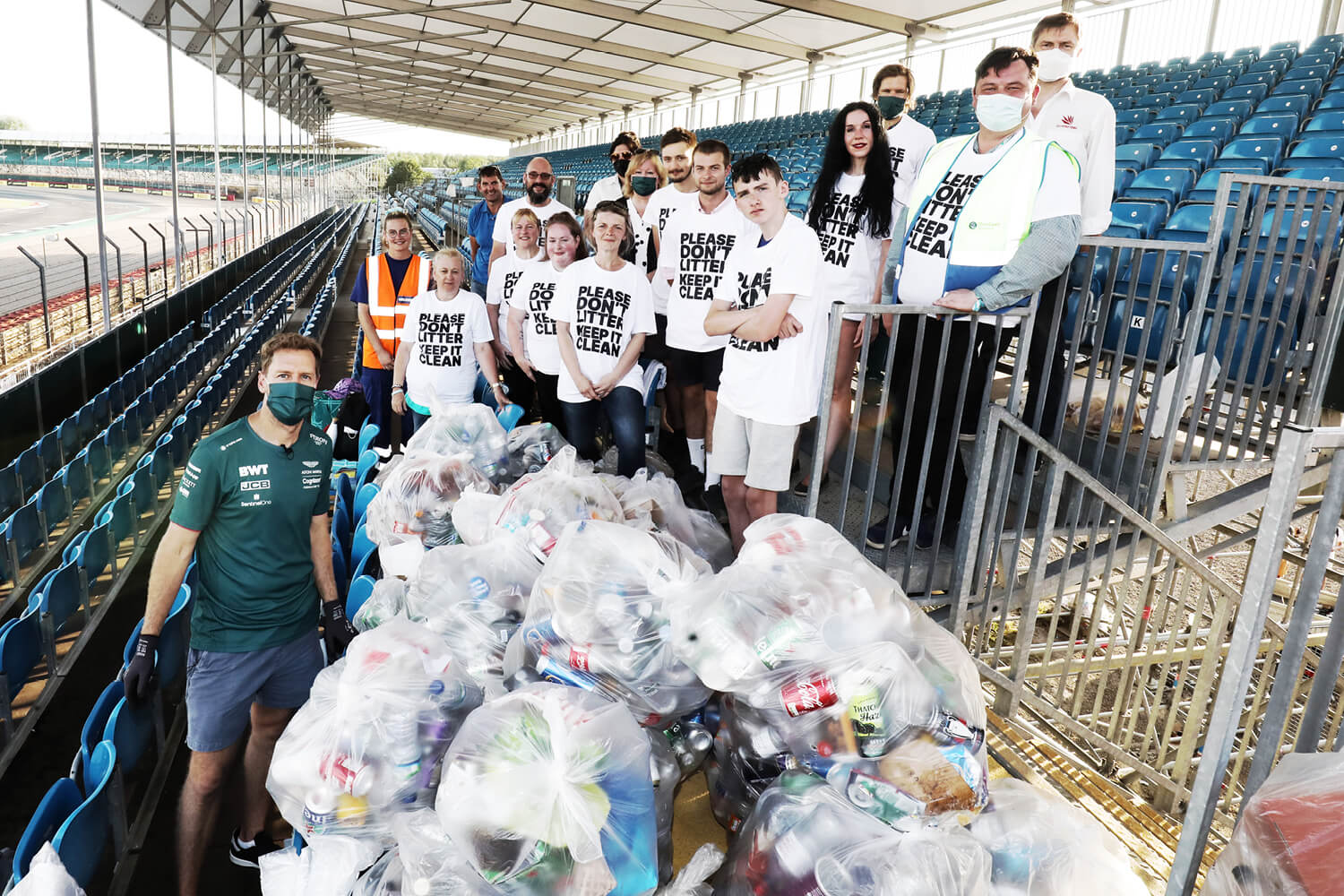 De exemplu, după cursa de la Silverstone, Vettel a mers în tribune pentru a ajuta voluntarii să strângă gunoialele lăsate în urmă de fani.
