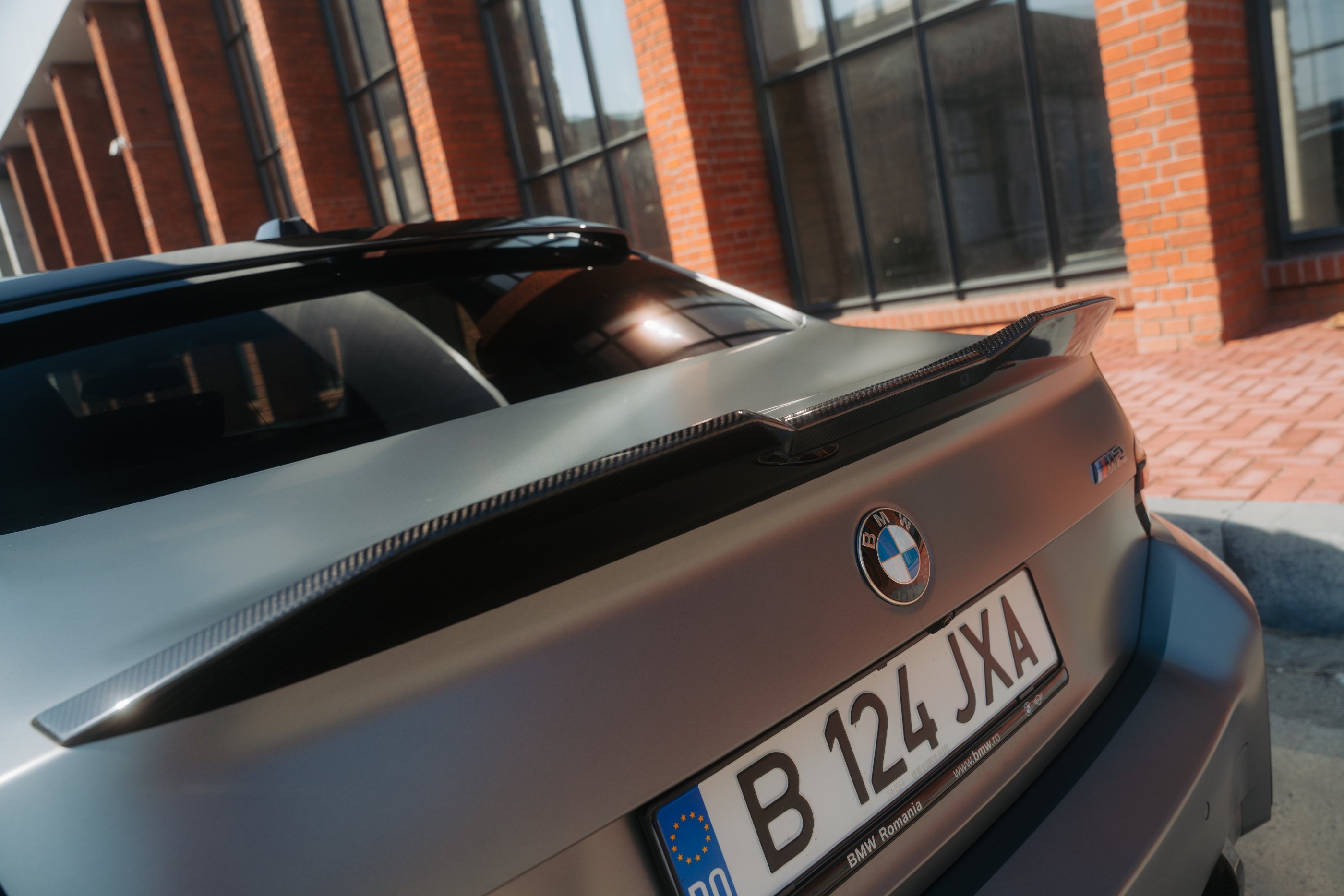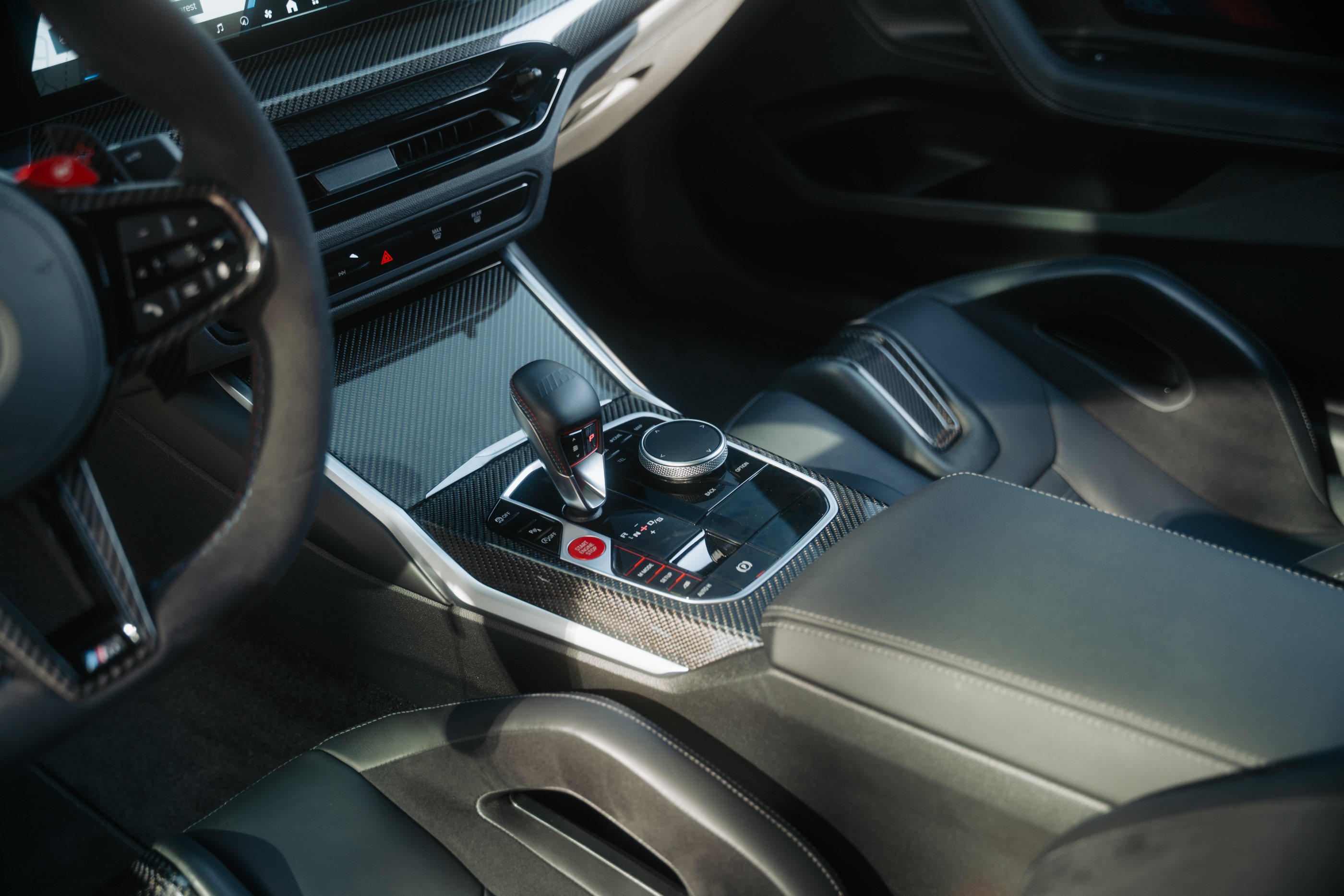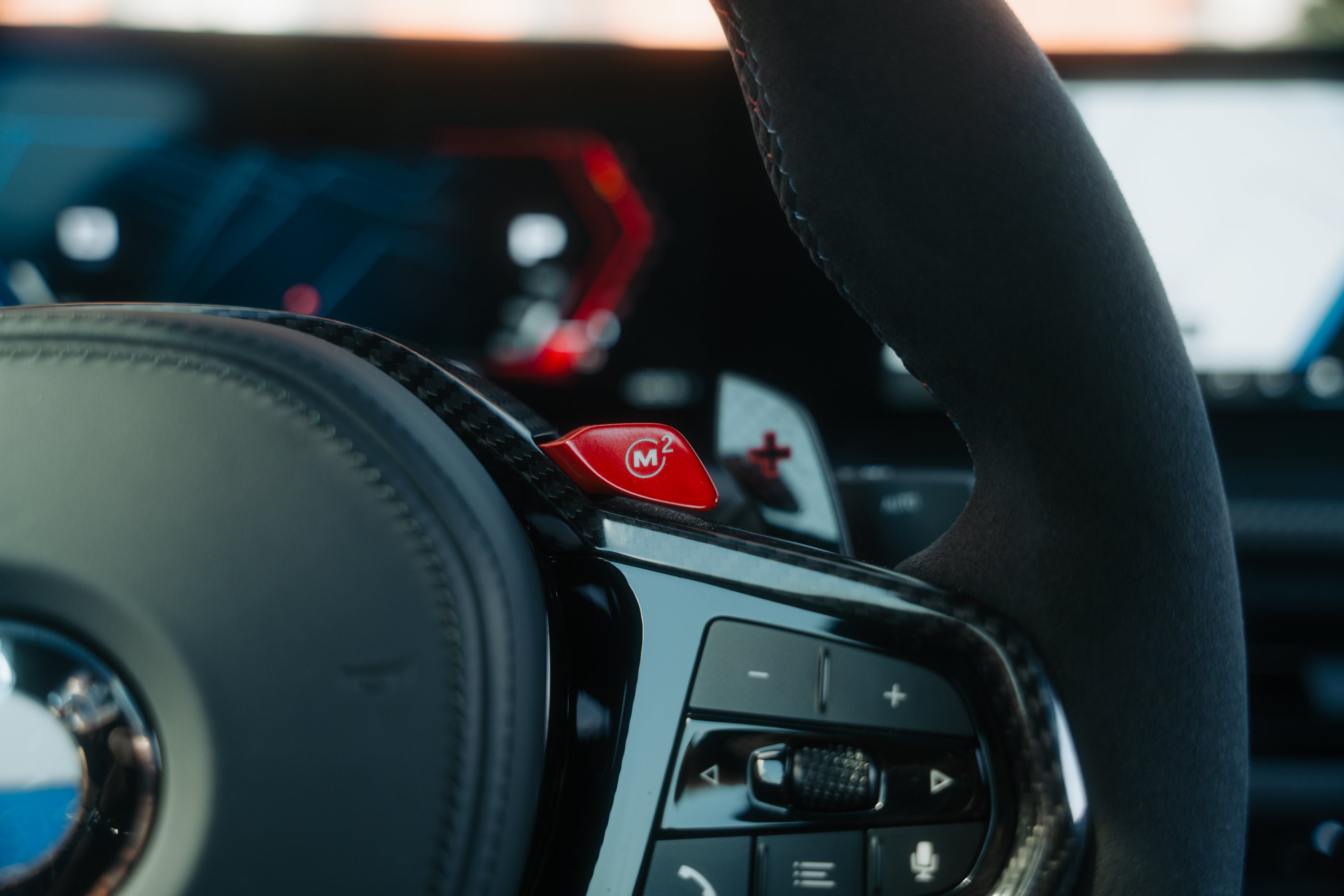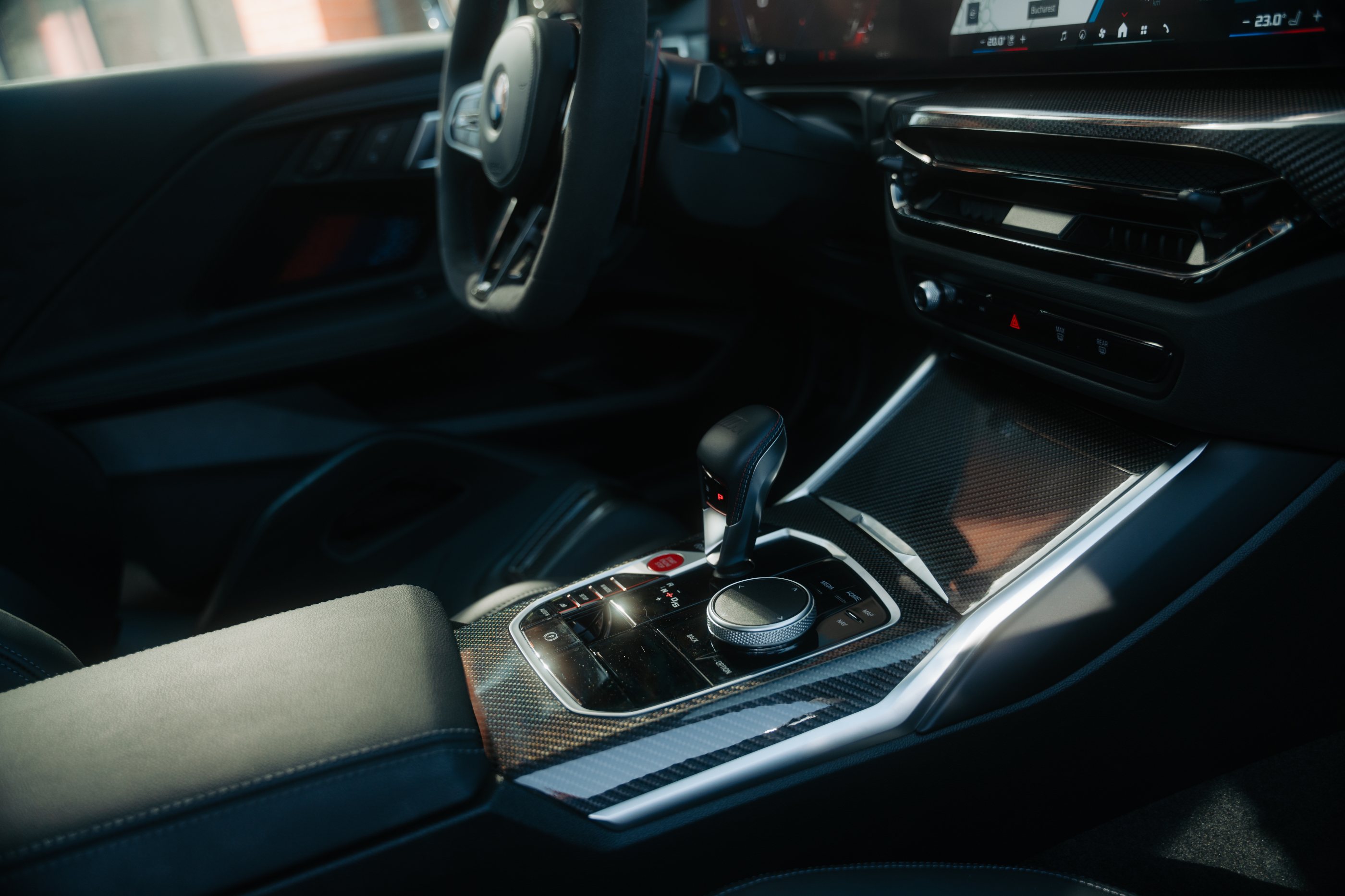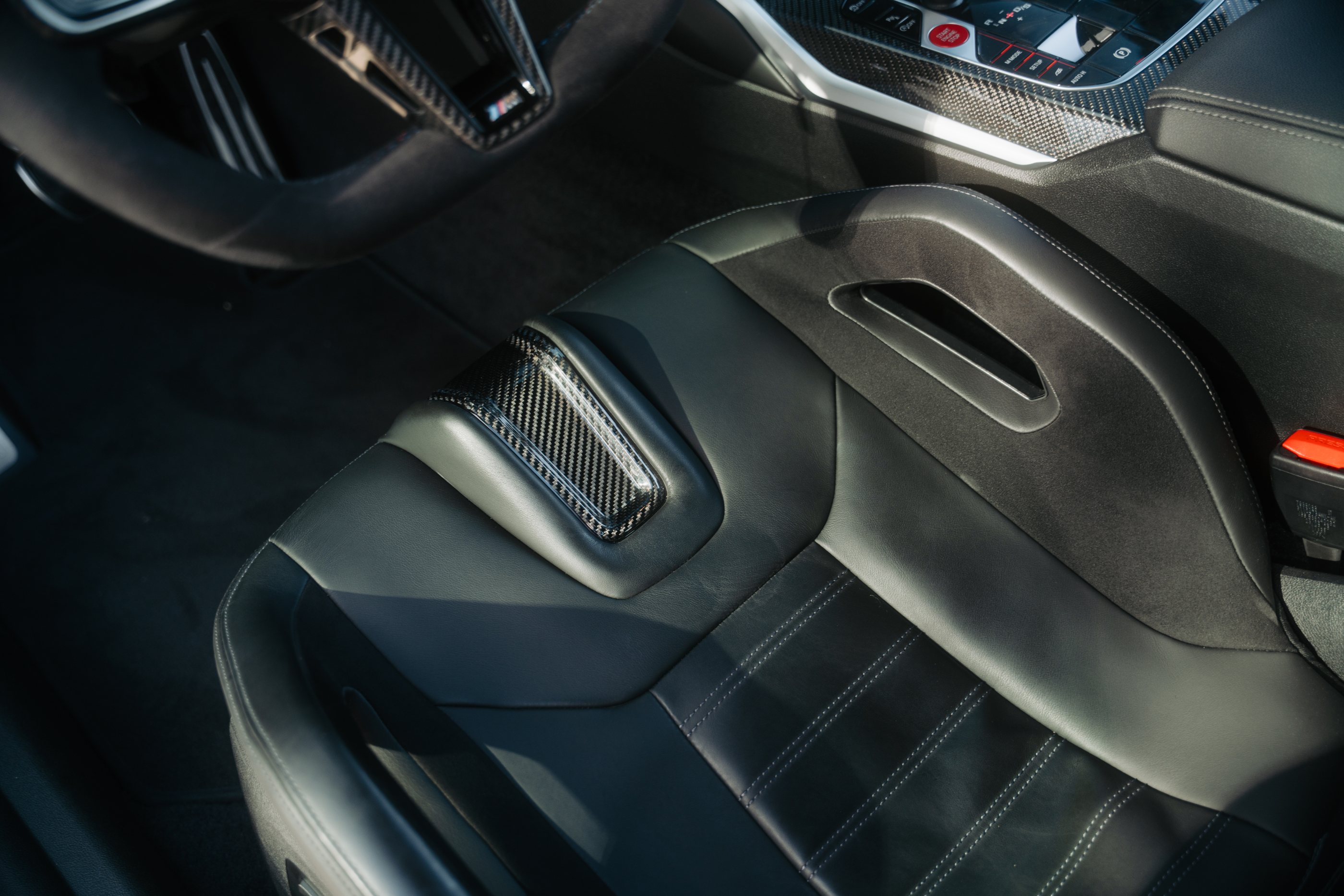 Pe modelul de test, acestea sunt incluse în pachetul M Race Track (la prețul de 14.350 de euro), care include, printre ceea ce deja cred că este evident, scaune de tip scoică M Carbon și un plafon M Carbon. De fapt, carbonul, sau mai exact CFRP-ul (plastic ranforsat cu fibră de carbon) domină peisajul pe afară și pe dinăuntru.