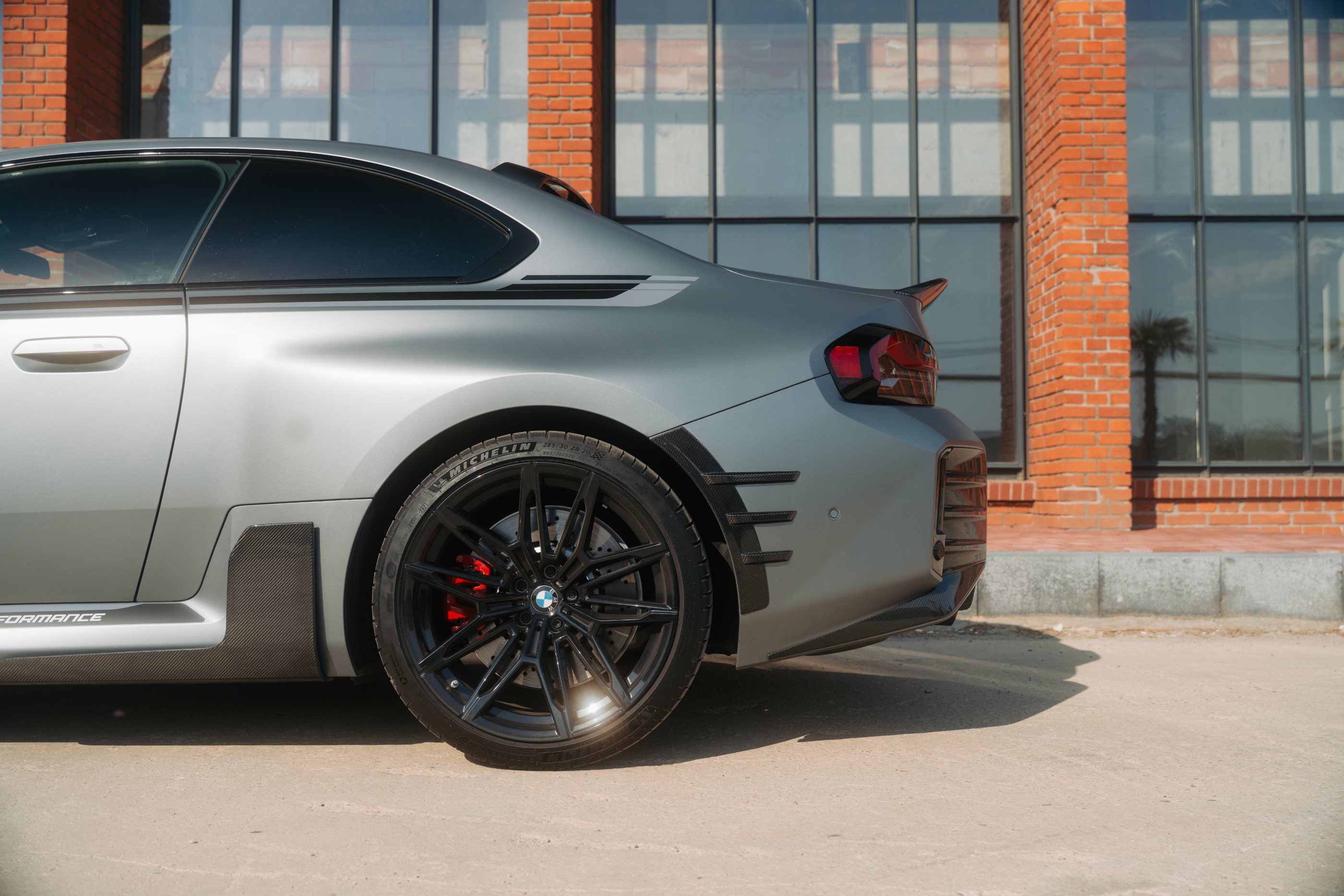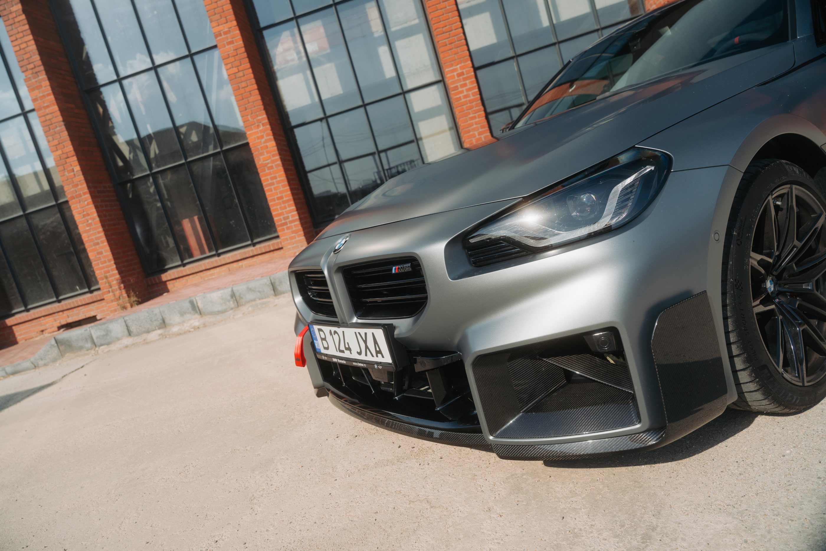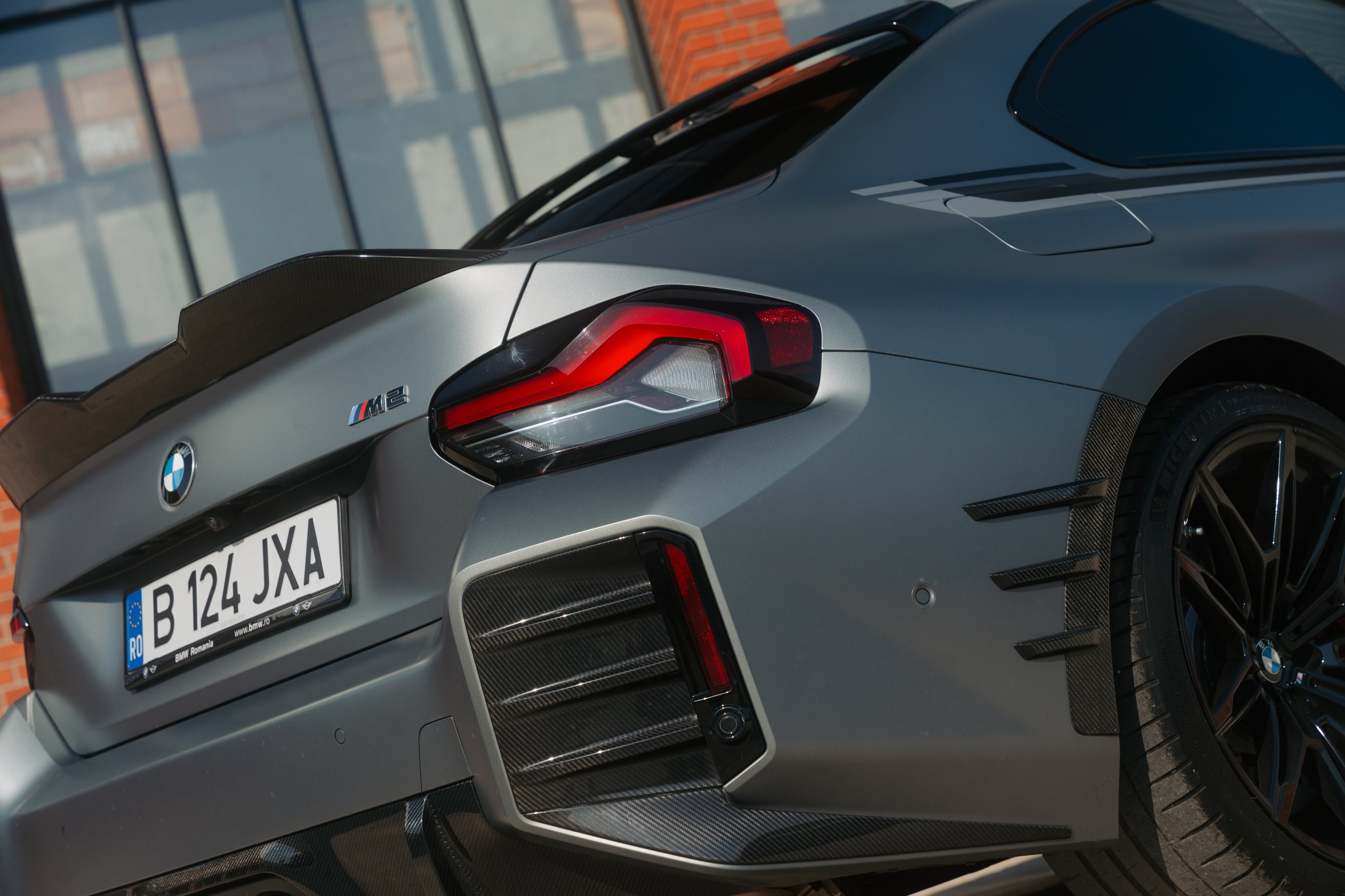 Dincolo de potențialul polarizant al unui M2 simplu și de imaginile care uneori nu-i fac dreptate, am fost fan de la început al esteticii lui M2. Lucrurile pot fi duse într-o direcție mult mai radicală (a se citi cu influențe puternice din motorsport), ca în cazul de față, prin instalarea de accesorii M Performance. Acestea pot viza partea de aerodinamică, sistemul de propulsie, șasiul și interiorul – și foarte important, toate sunt omologate.
