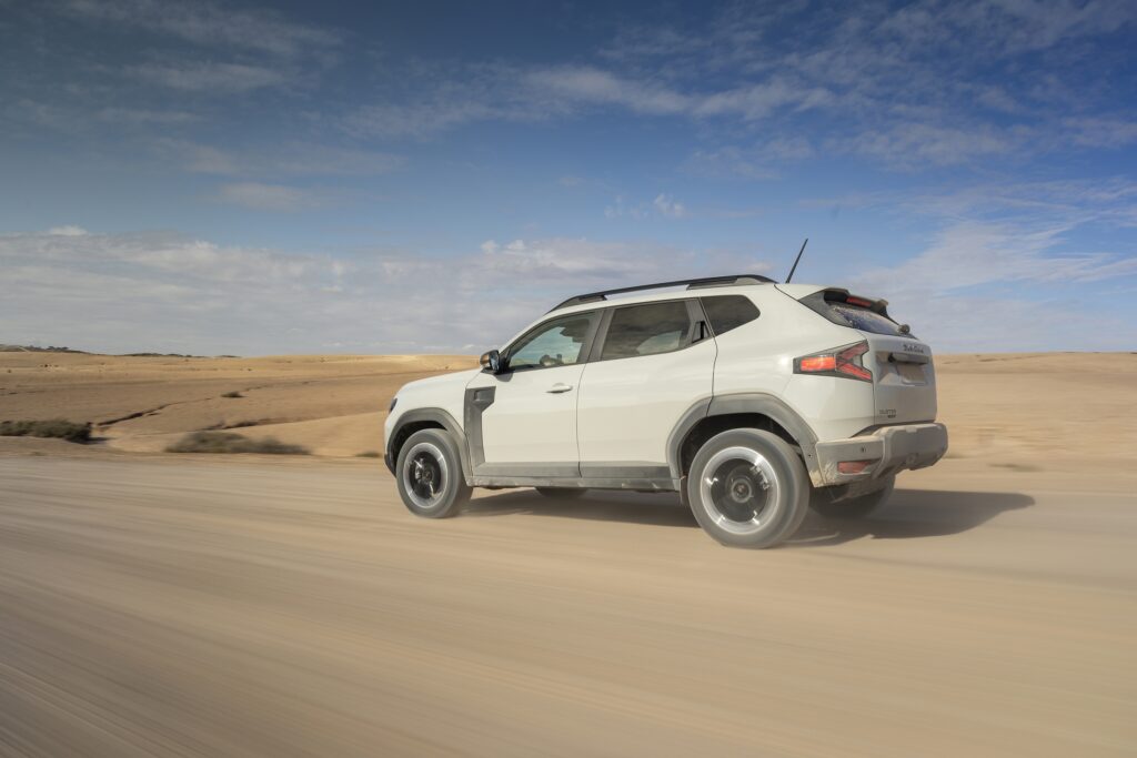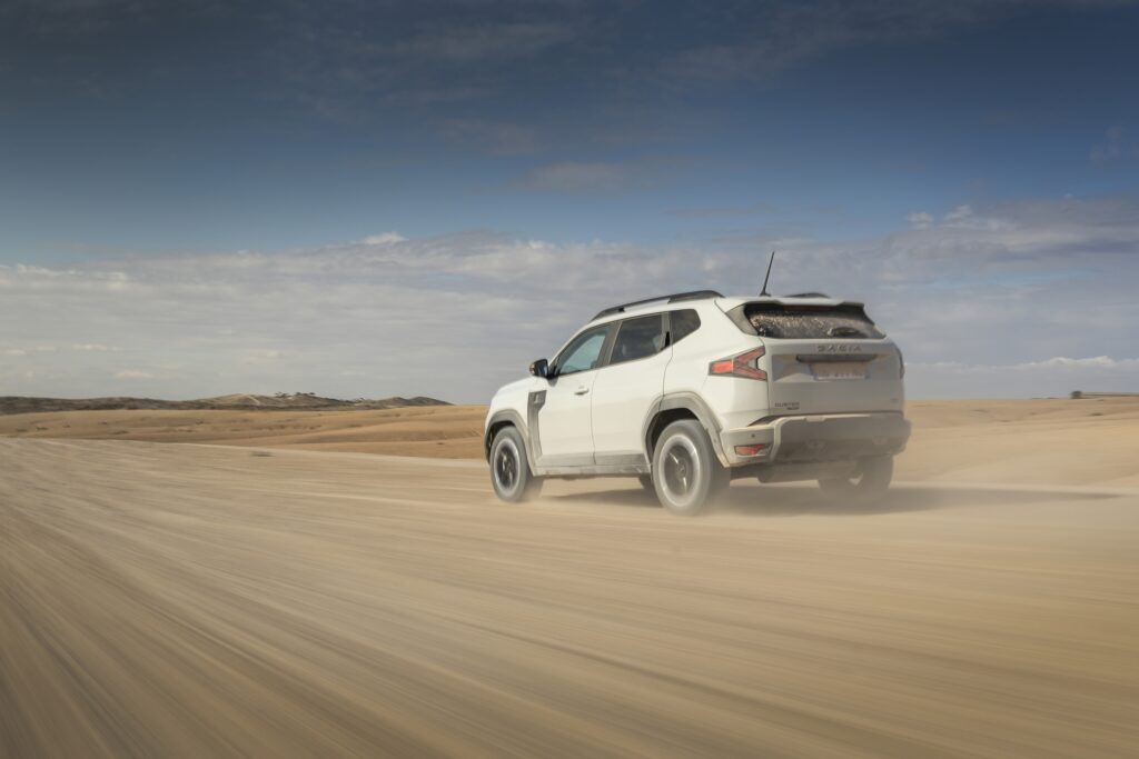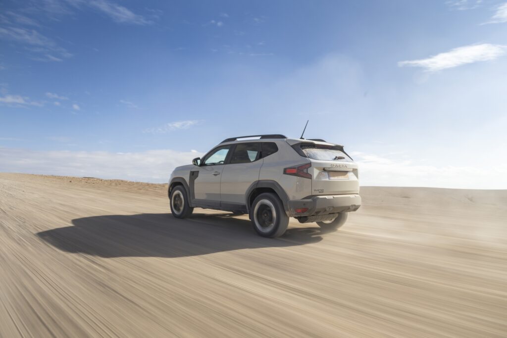 Soluția tehnică aleasă pentru puntea spate nu a mai permis păstrarea suspensiei independente. Motorul electric și cutia de viteze sunt montate pe un subcadru, practic vorbim despre o punte semirigidă pe spate. Plusul de kilograme, noul model este cu 80 kg mai greu decât prima versiune Duster 3 cu tracțiune integrală, este grupat în jurul punții spate (propulsor și baterie), ceea ce face spatele mașinii mai puțin viu, țopăitor pe suprafețe denivelate.